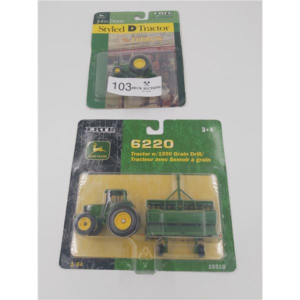 Ertl John 6220 Tractor w/1590 Grain Drill and Ertl Style D Tractor Diecast