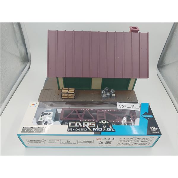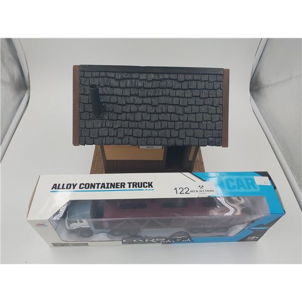 Two Piece Lot of Prebuilt Building and Diecast Truck Model