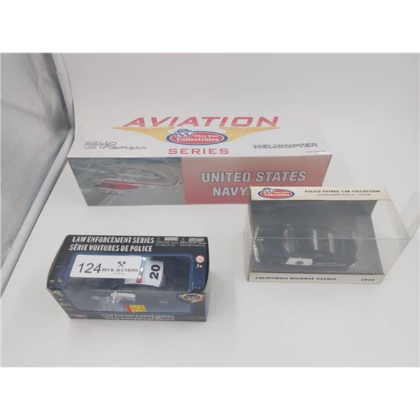 White Rose Collectible Aviation US Navy Helicopter and Motor Max 1:43 Police Car