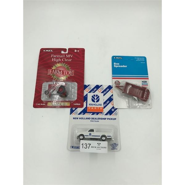 Farmall MVB High Clear Farm Toy (1:64) New Holland Dealership Pickup (1:64) Ford/New Holland Box Spreader