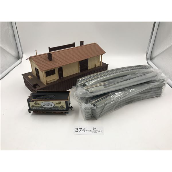 Set Of Train Tracks With Train car And Station House374 - Set Of Train Tracks With Train car And Station House