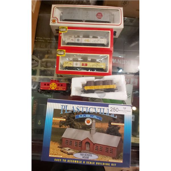 Plasticville 1930 School House Plus Train Box Cars Lot