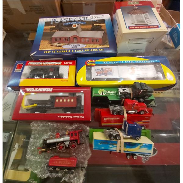 Plasticville 1930 School House Plus Train Box Cars and Semi Truck Lot