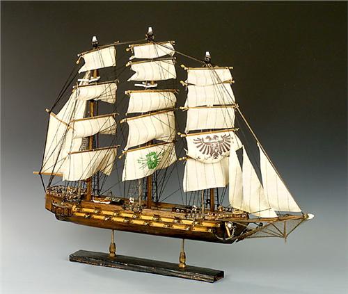 Spanische Fregatte des 18. Jahrhunderts Mit 30 Kanonen, volle Besegelung und Takelage, Länge: 72 cm!