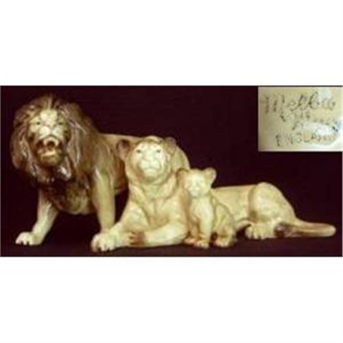 Melba Ware Model Of A Lion, Lioness And A Cub Lion Standing Lioness Lying Cub Sitting Light And Dark Brown Gloss
