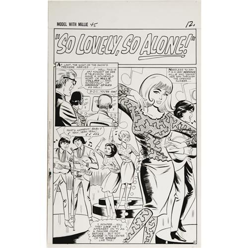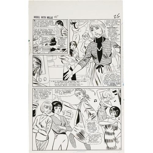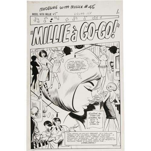 <B>Stan Goldberg - Modeling with Millie #45, Complete 18-page Story "Millie A Go-Go" Original Art (Marvel, 1966).</B></I> Millie dances her way to TV stardom in this swinging sixties romp. With appearances by Millie, Chili, Toni, Agnes, Clicker, Mr. Hanover, the Gears, Mr. Arnold, Debbie, Pam, and Valerie -- the Millie posse's all here! Each page has an image area of 12.5" x 18", and the art averages Excellent condition.<BR><BR><b>Shipping:</b> Large Flat (<a target="_blank" href="http://www.heritageauctions.com/common/shipping.php">view shipping information</a>)