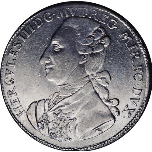 <B>Modena. Ercole III 3 Scudi 1783, </B></I>KM-C19.2, Davenport 1393A, VF-XF, cleaned long ago, rim ding on the obverse at 6 o'clock and some old scratches on the bust.<BR><I>From the Blue Ridge Collection</B></I><BR><BR><b>Shipping:</b> Coin/Currency (<a target="_blank" href="http://www.heritageauctions.com/common/shipping.php">view shipping information</a>)