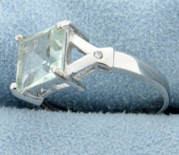 The Step cut gemstone is set in platinum over sterling silver. Size 7 1/2 2.4g