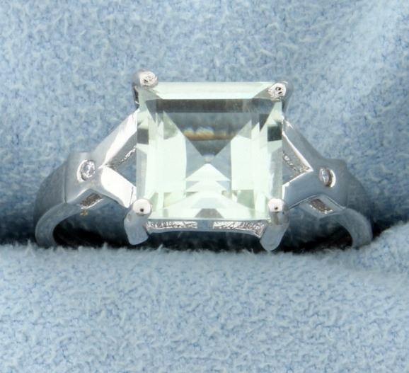 The Step cut gemstone is set in platinum over sterling silver. Size 7 1/2          2.4g