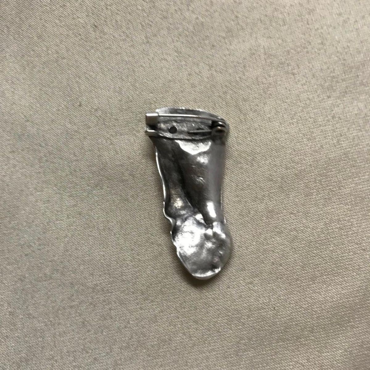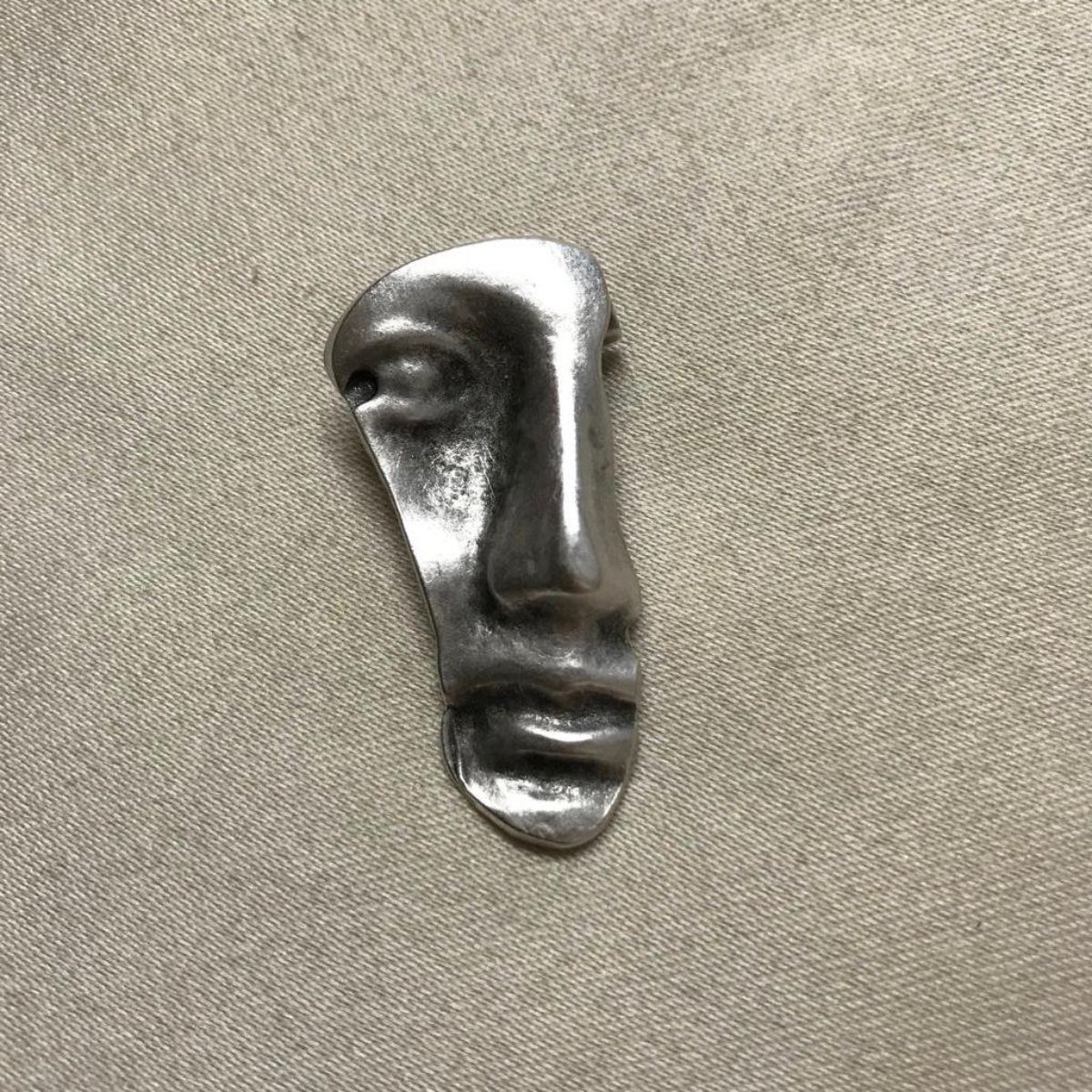 Modern, silver-plated scarf brooch pin, in the form of an abstract style, fractional face. 1 3/4" L X 3/4" W.