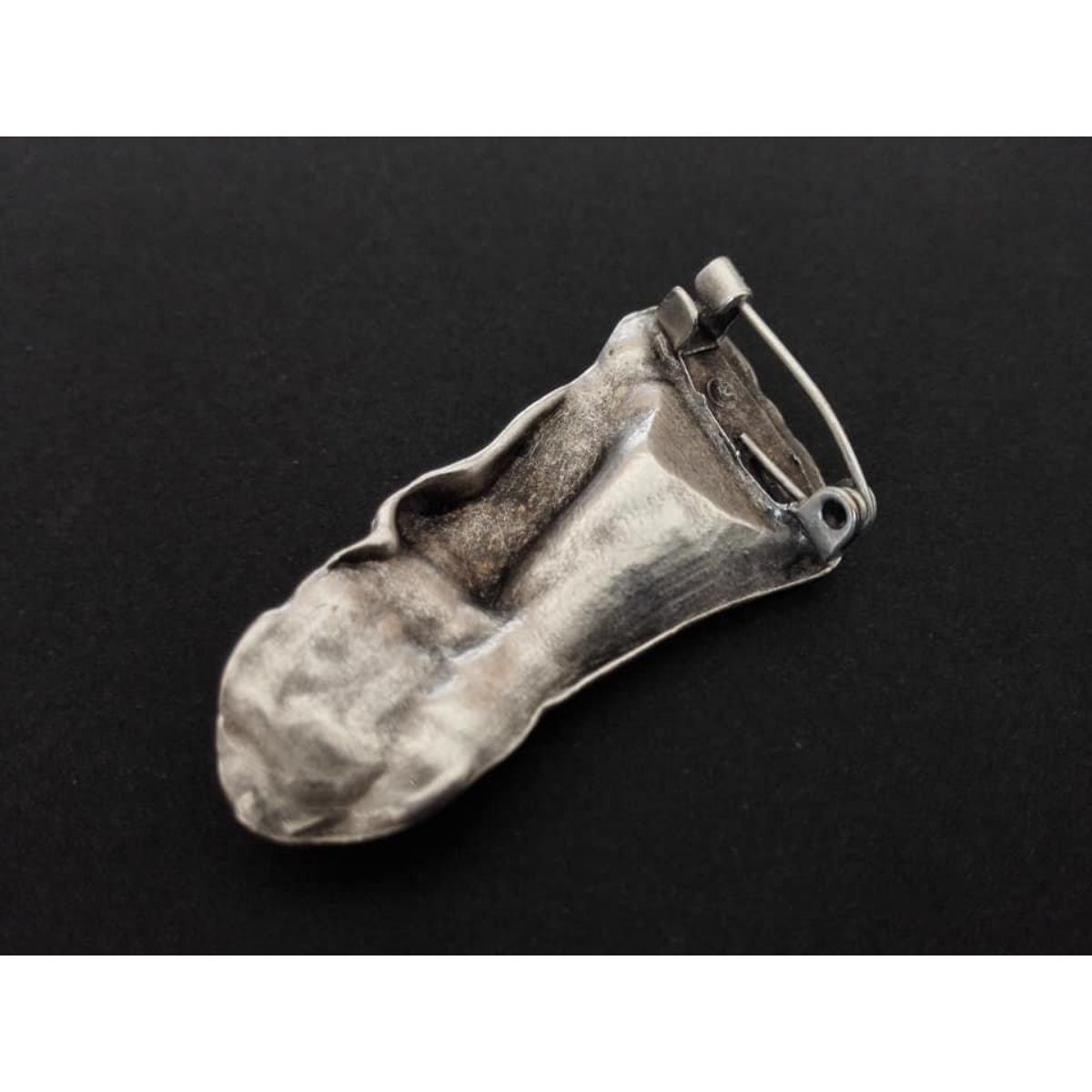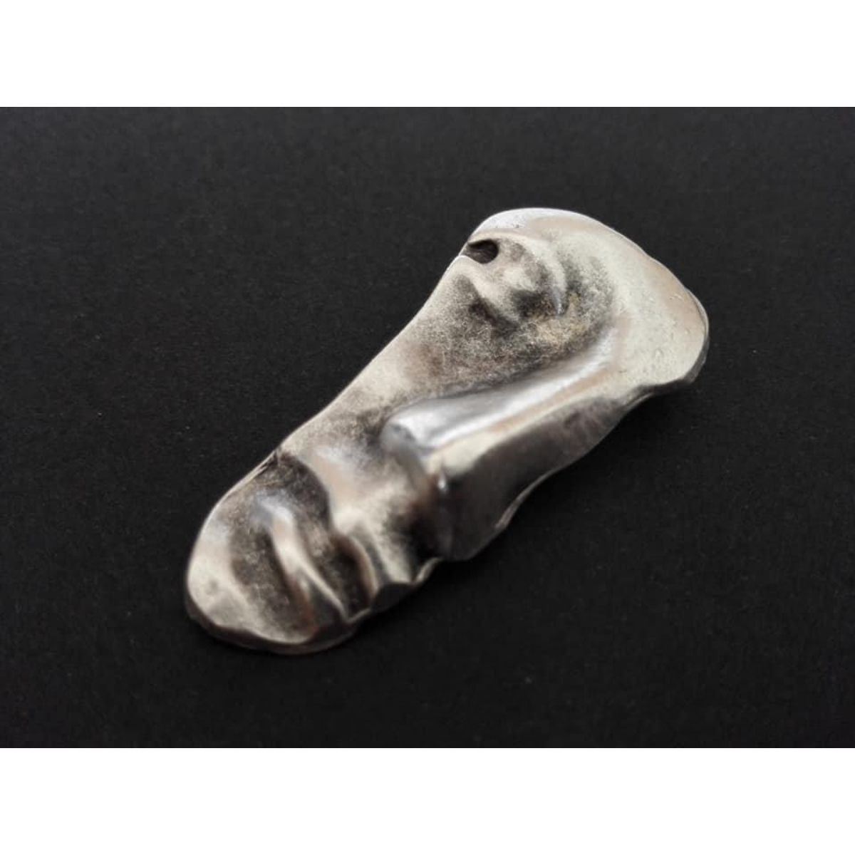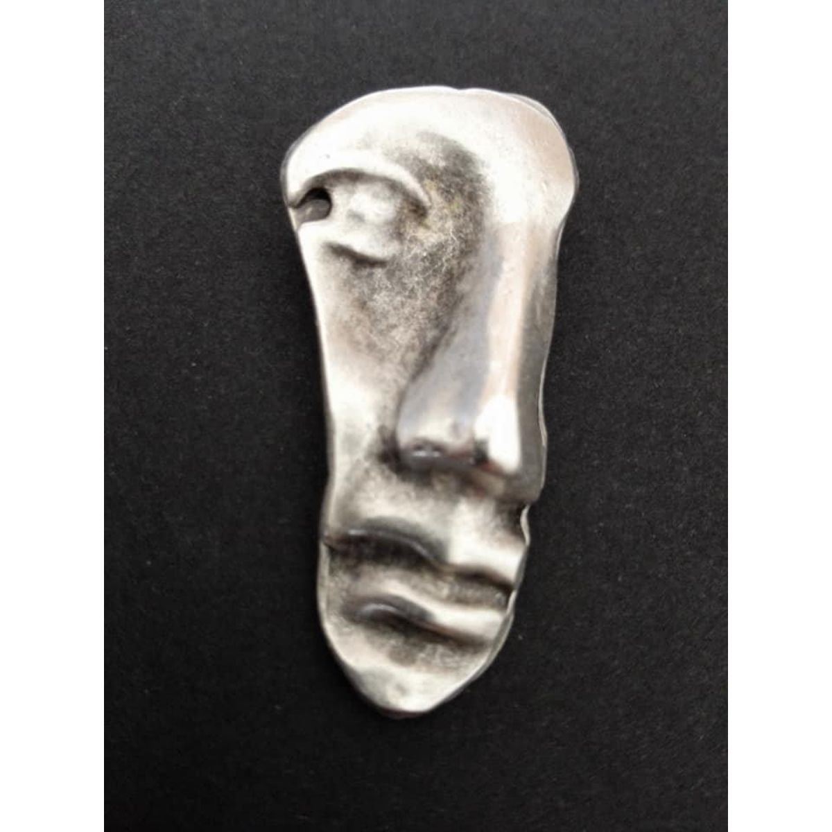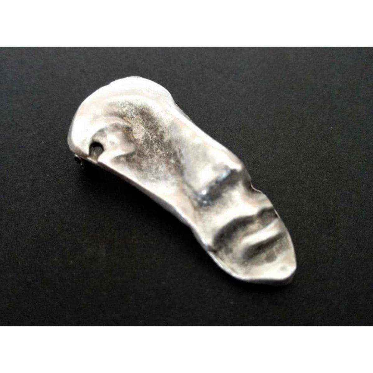 Modern, silver plated scarf brooch pin, in the form of an abstract style fractional face. 1 3/4" L X 3/4" W.