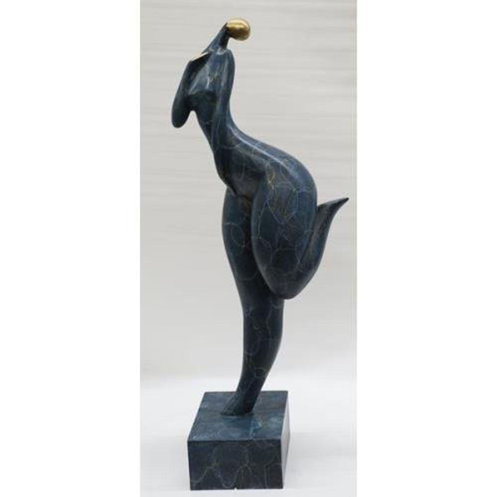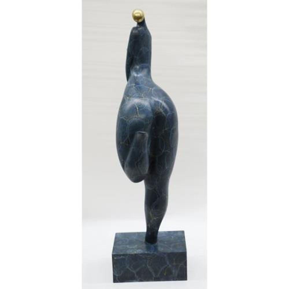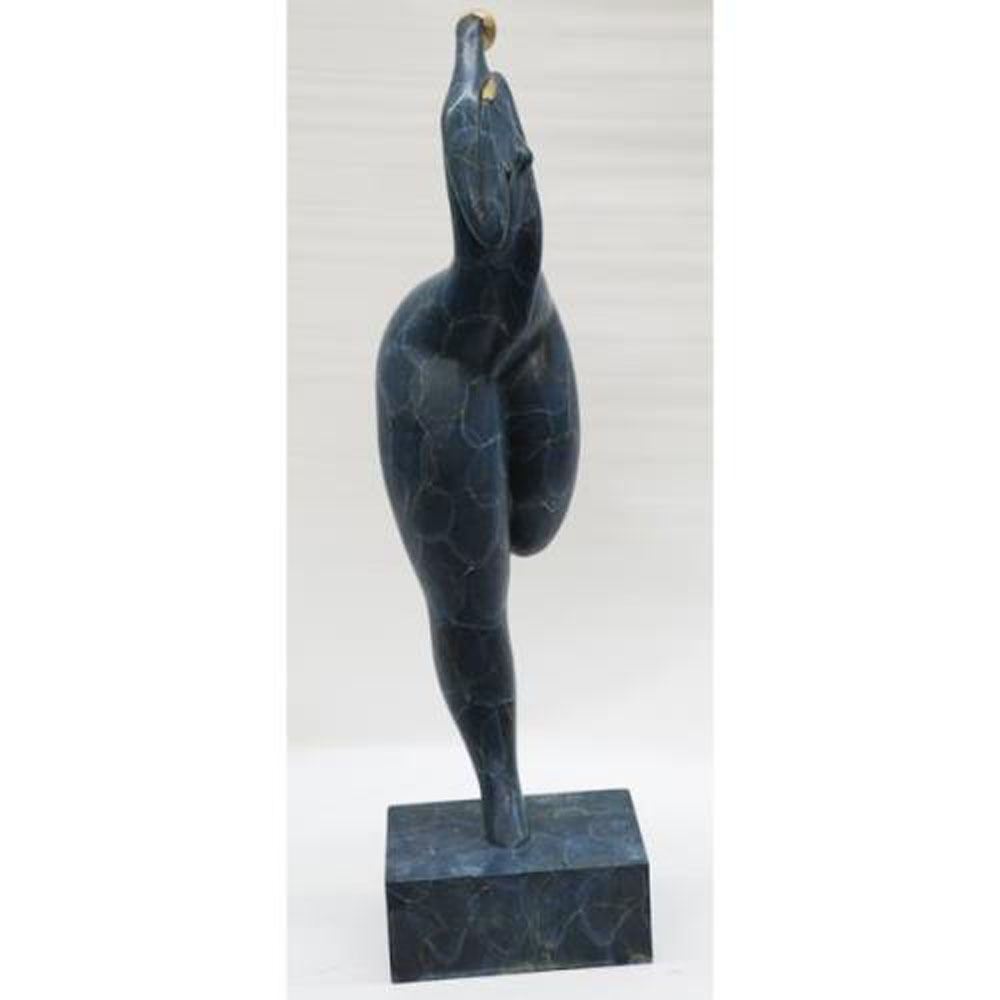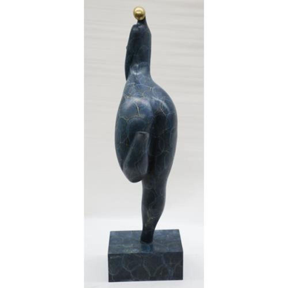 The pirouette is one of the most famous ballet movements wherein the dancer spins around on dime point on one leg. The other leg can be in various different positions. This calm ballerina is in the process of completing a pirouette. Her leg is fully extended as she effortlessly completes the move. Her green patina camisole dress flows gracefully in accordance with her movement. Bronze Dimensions: Height 23 X 7 Inches. Weight: 9 LBS.