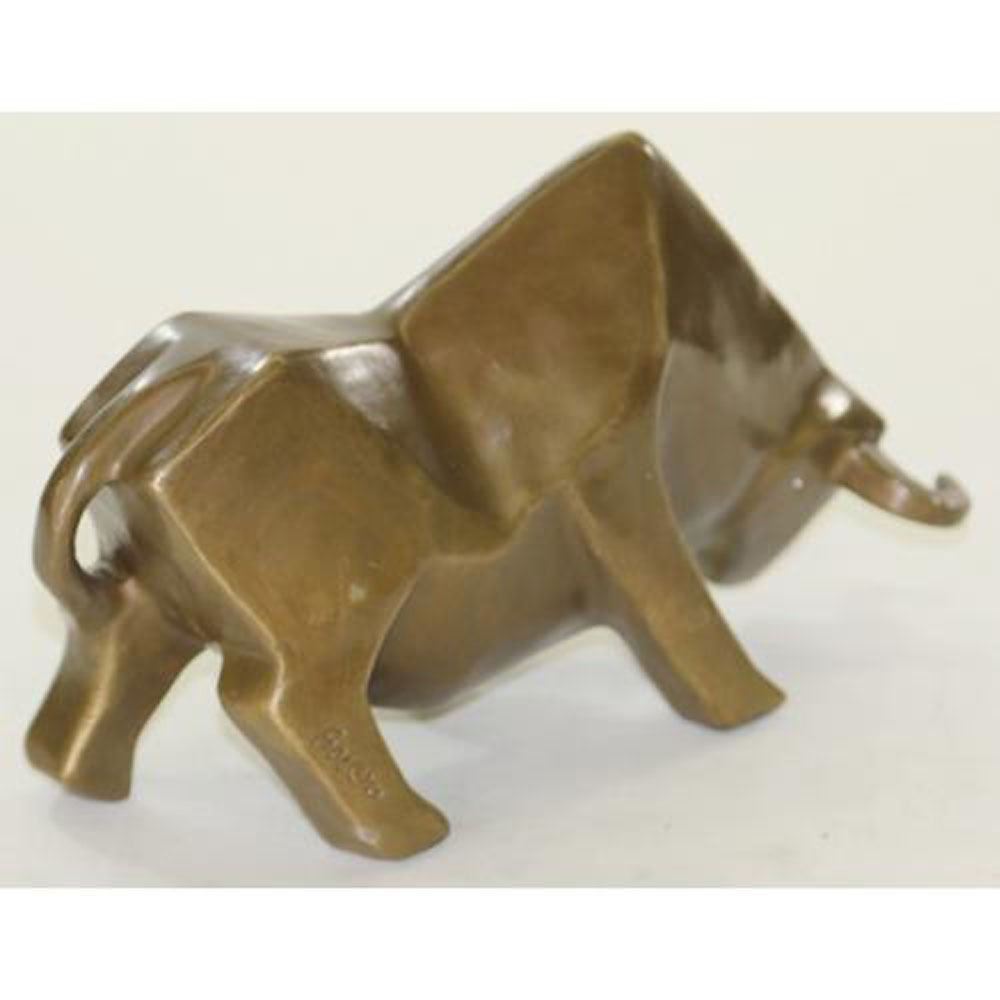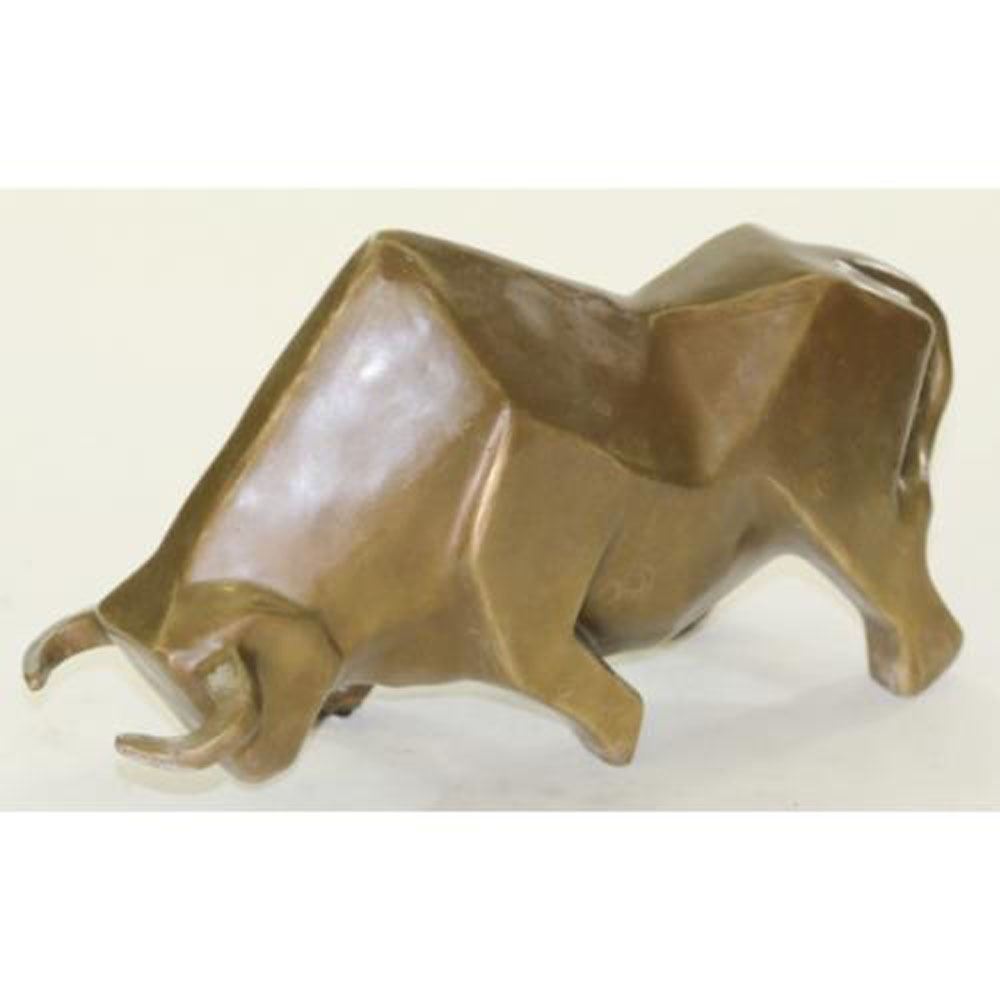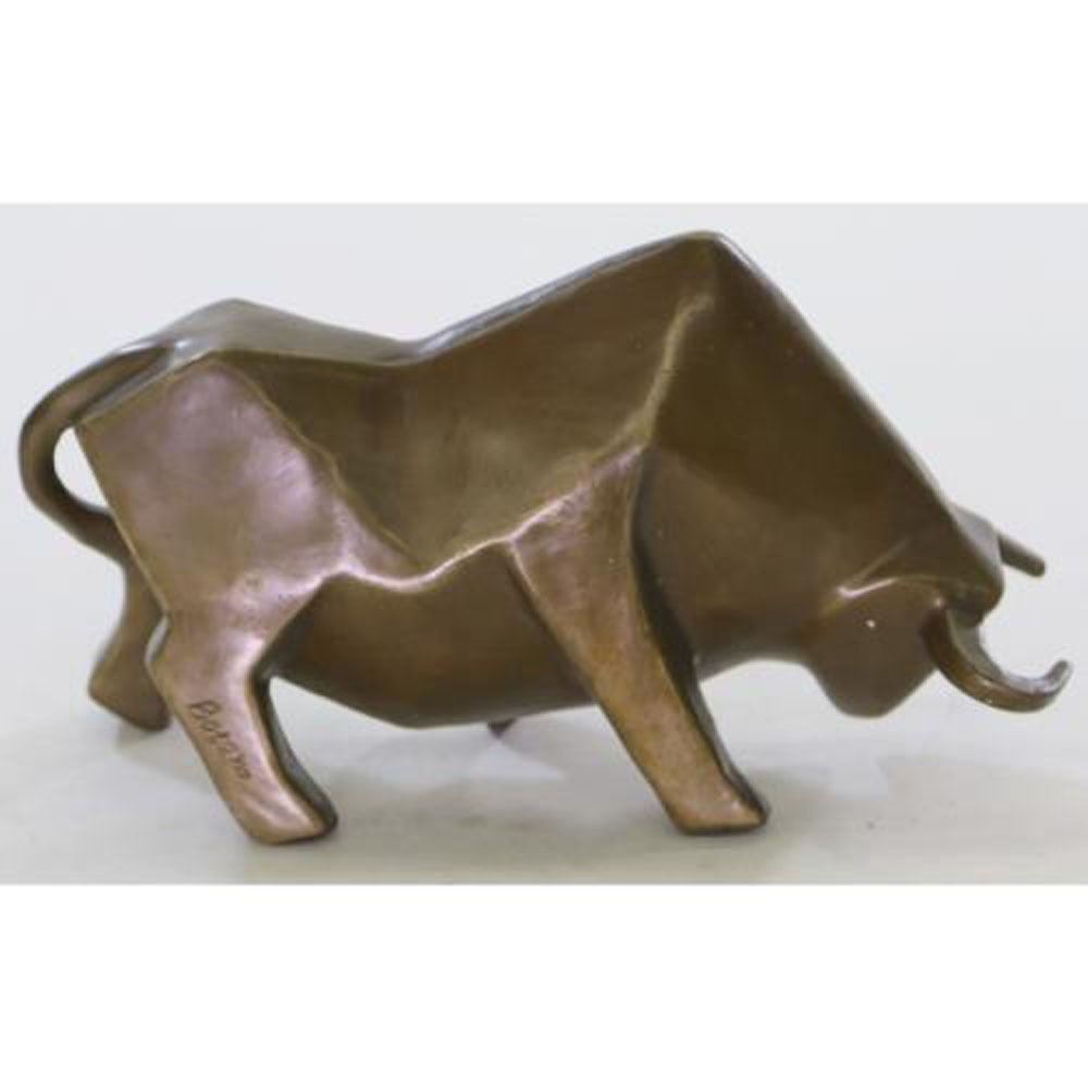 This is a great take on work depict an abstract large bull. The exaggerated portions of the bull make it an abstract gift for any bull or animal lover. This proportionally exaggerated bronze sculpture is characteristic of abstract and representational style. The sculpture was molded by using the lost wax casting method. Bronze Dimensions: Height 6 X Width 10 Inches. Weight: 7 LBS.