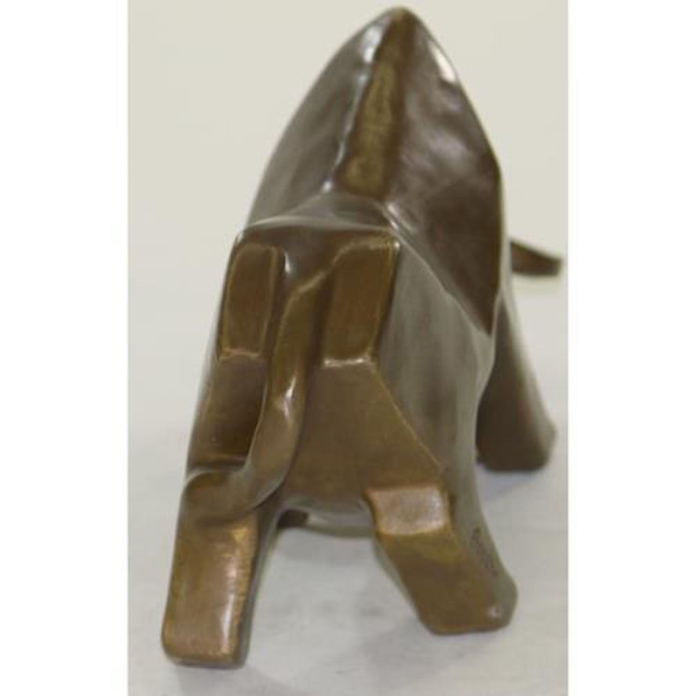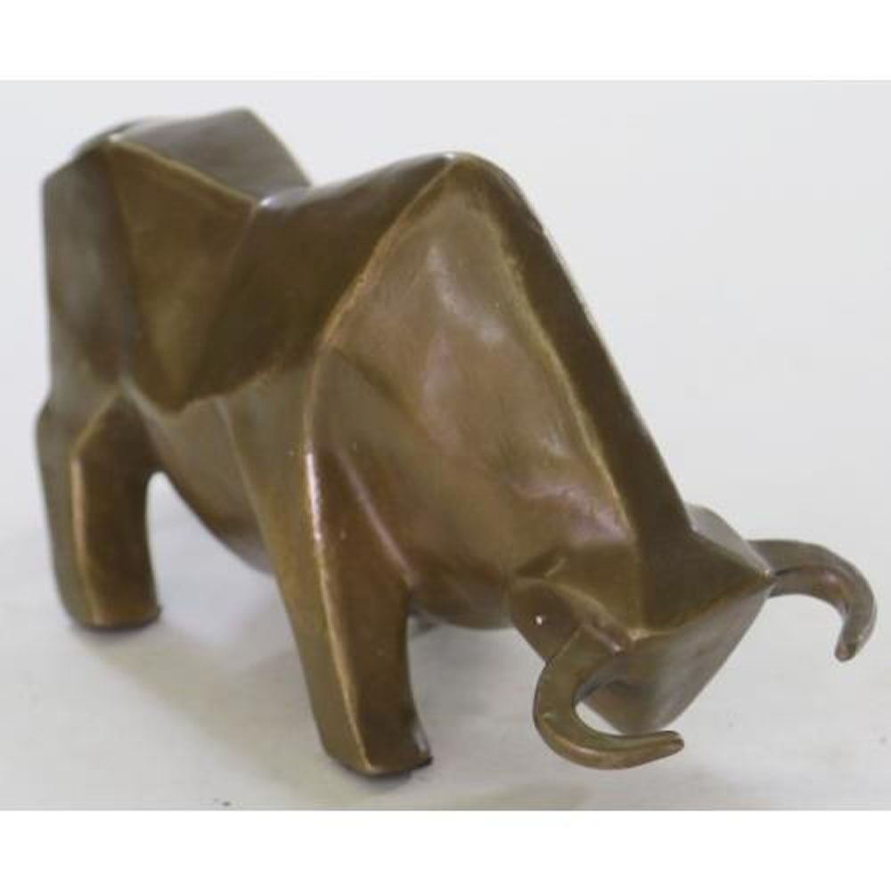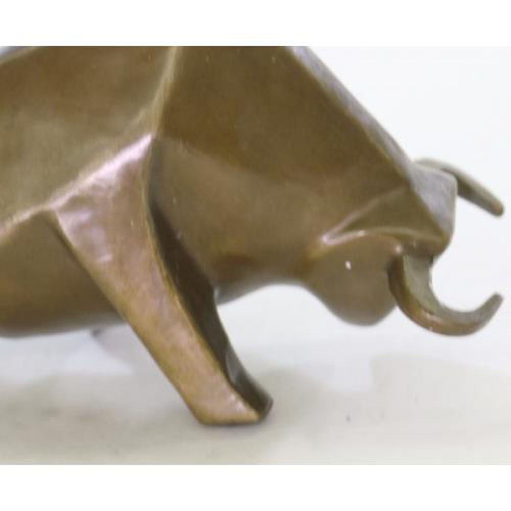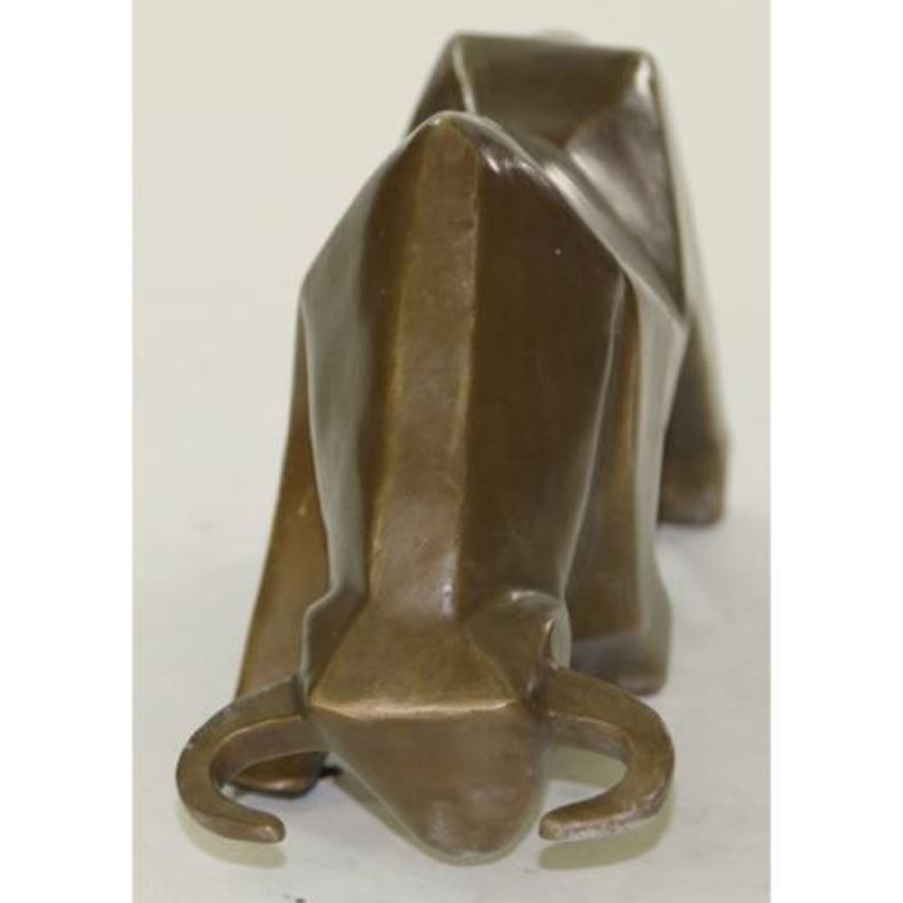 This is a great take on work depict an abstract large bull. The exaggerated portions of the bull make it an abstract gift for any bull or animal lover. This proportionally exaggerated bronze sculpture is characteristic of abstract and representational style. The sculpture was molded by using the lost wax casting method. Bronze Dimensions: Height 6 X Width 10 Inches. Weight: 7 LBS.