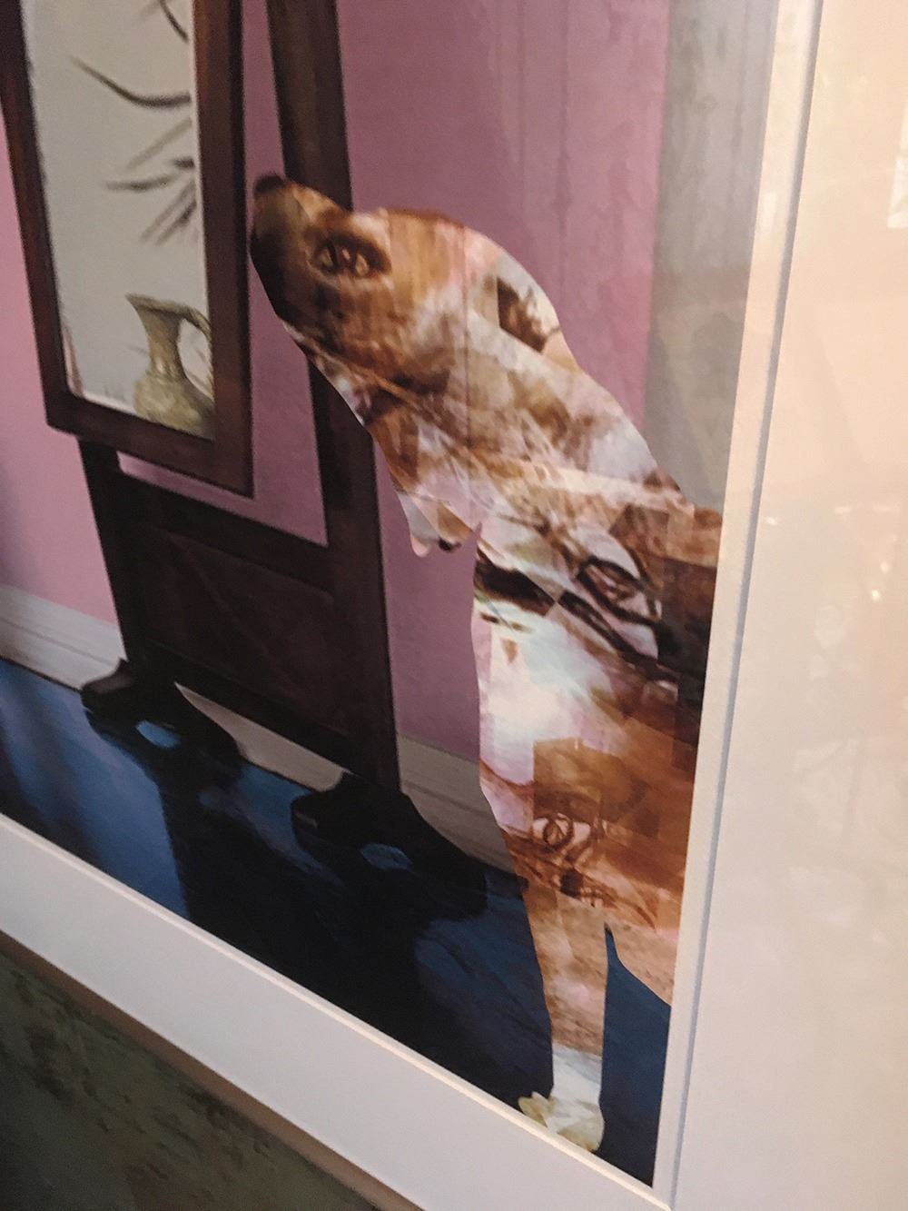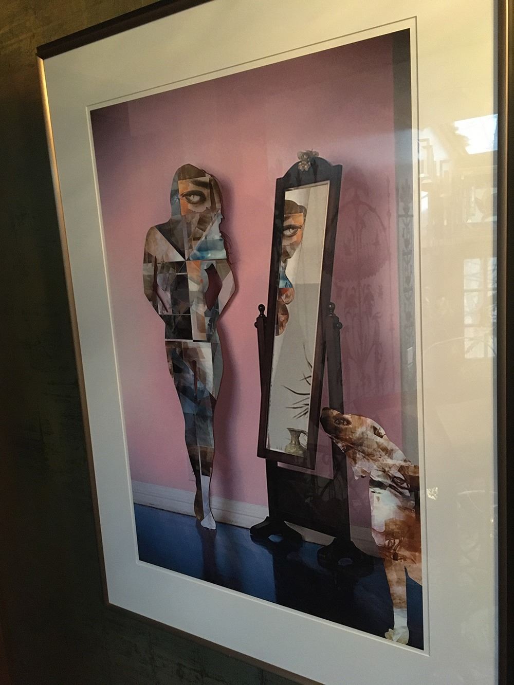 Blind Salamander, Technographic Print, framed under plexiglass, by David Szydlowski. As written in a catalog of artwork by David Szydlowski: Cave dweller deprived of light by incessant worldly stimuli. A Farmington Valley, CT native, David Szdlowski came alive on the art scene in the late 1990-2000 with showings in the Farmington Valley, CT area and the Wadsworth Atheneum, he also had a gallery in New York City. A modern artist who was known for his prolific work in a style celebrated as Cerebral Art. He seems to have left the art world behind in the early 2000's, as there is no record of his work dating past 2002. A very limited number of his works can now be found on the marketplace, and this piece is from a private collection of Peter DeLeone. Featured in artist's catalog and originally sold for $6500. pd estate