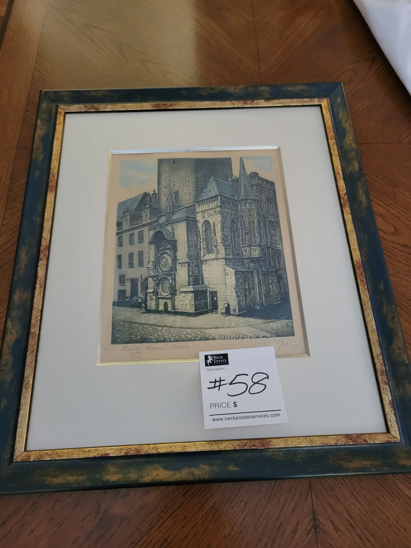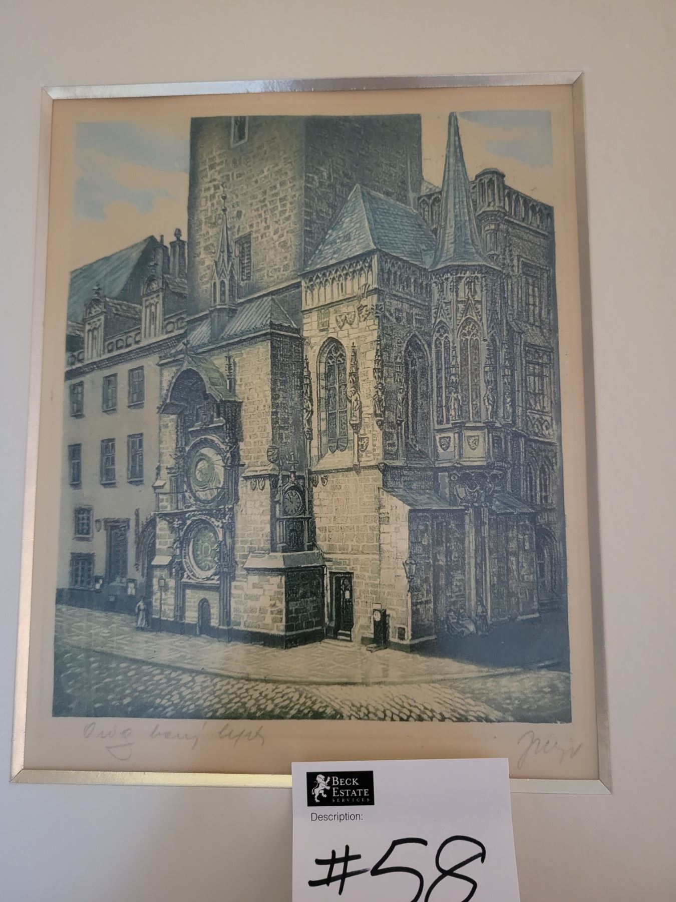Modern Art Embossed Color Etching. European, in Wooden Frame. Signed by Artist - 15 3/4"w x 18 1/2"h