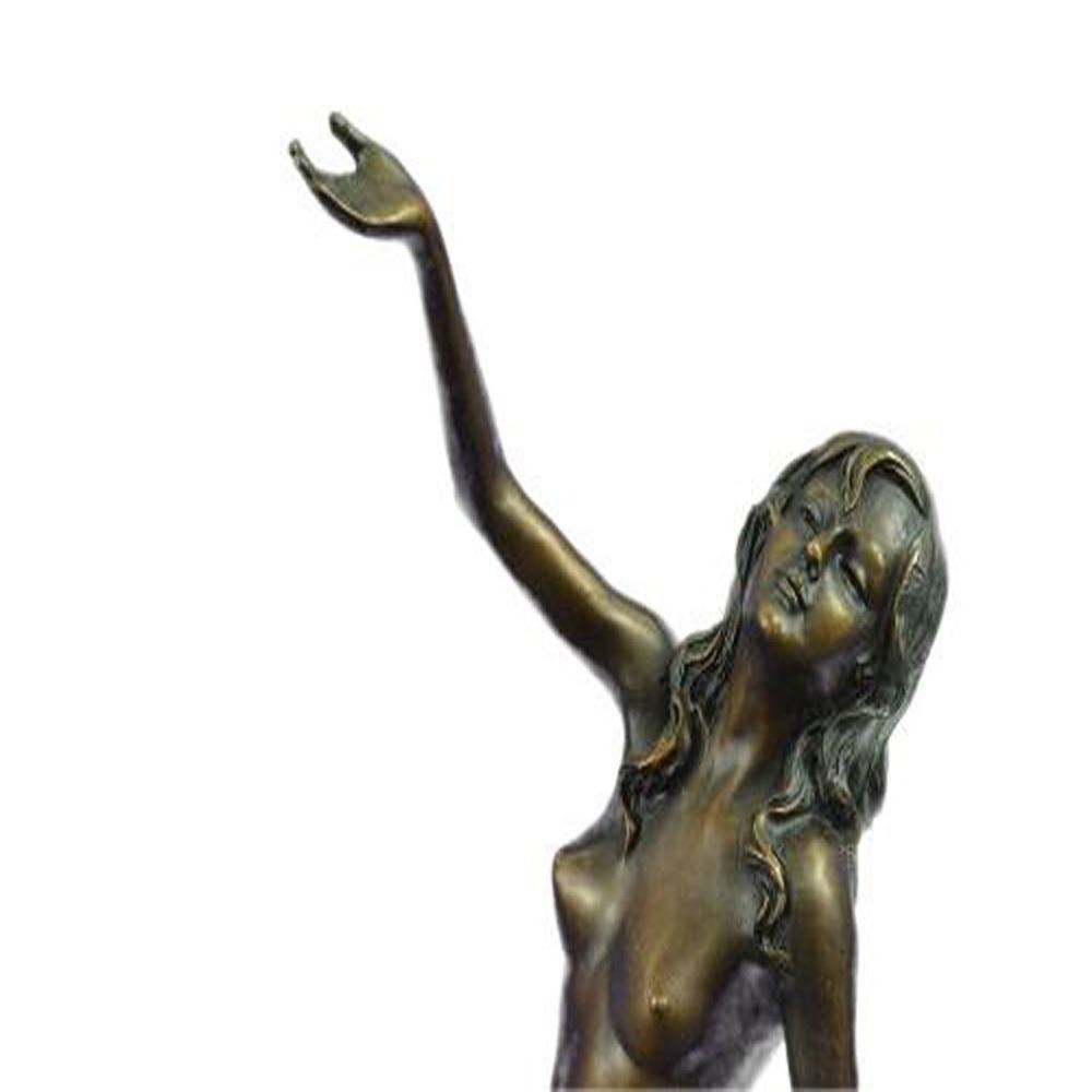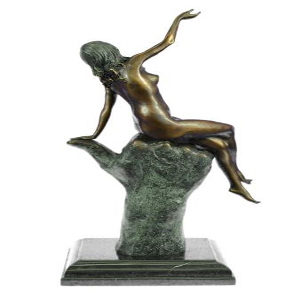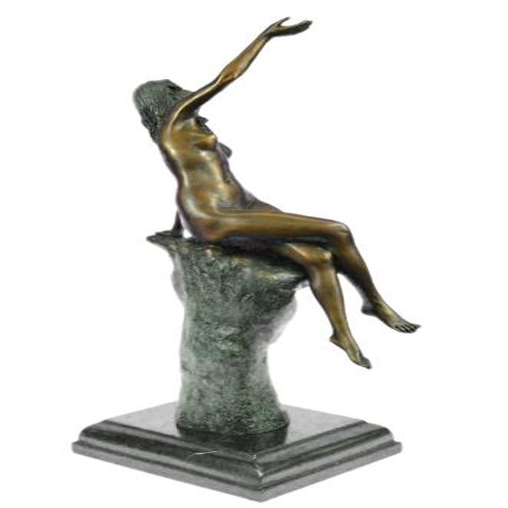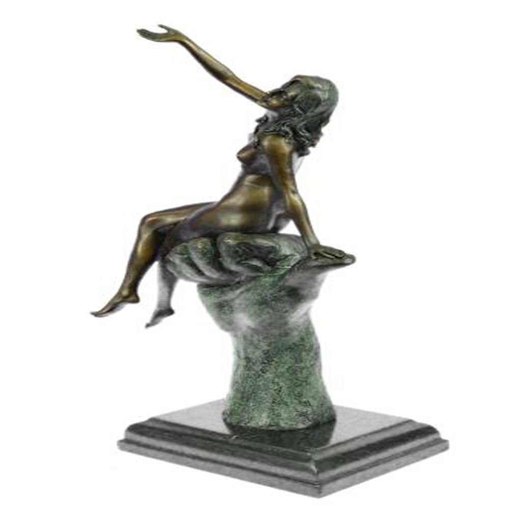 Stunning quality bronze sculpture depicting a naked lady in a seductive pose. The lady is sat on top of an oversized hand, this bronze has a mild erotic undertone. Lovely patination, a rich brown for the hand contrasting against a gilt effect for the lady. This is a genuine hot cast bronze finished on a marble base. Dimensions: Height 15 X Width 8 inches. Weight: 9 LBS.