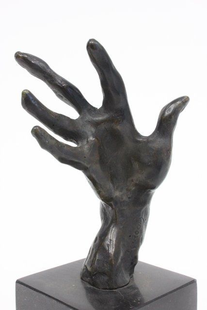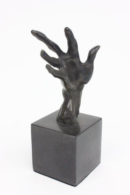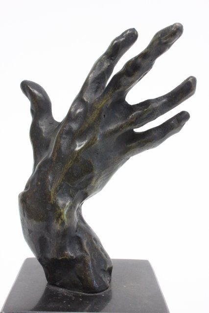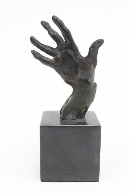 Modern bronze sculpture of 'Hand'. Artist signed A. Rodin on marble base. Approx. 5.25" H. On base 8.5" H.