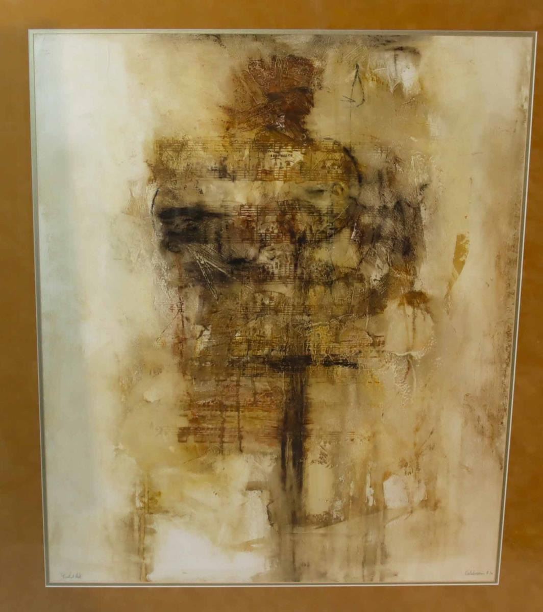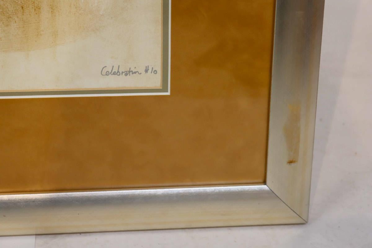 Lithograph titled "Celebration #10" signed indistinctly in the lower left. Brutalist design.