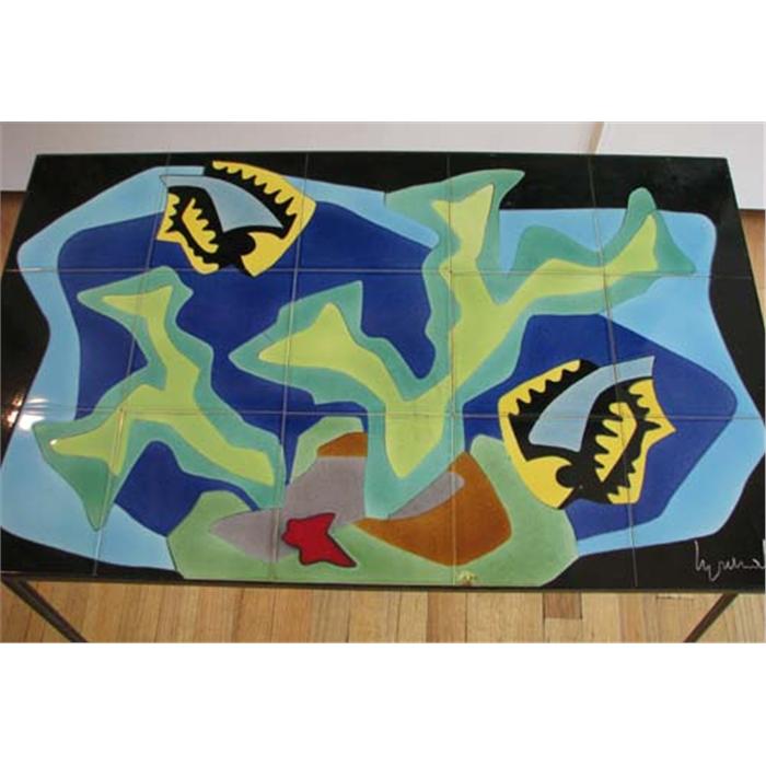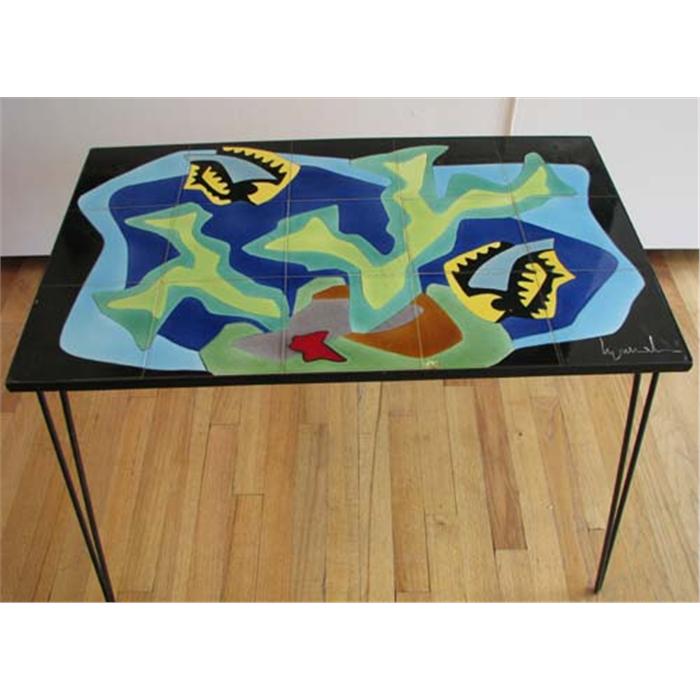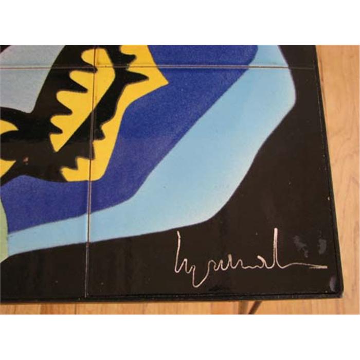 Condition:  in good condition apart from some chipping to the edges of the ceramic tiles on the lower edges and oxidation to the steel legs