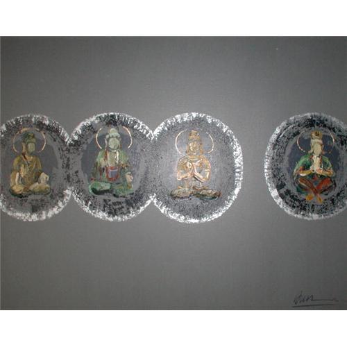 Excellently painted by well-known artist Tang Qun from Beijing, this painting shows four buddhas. Tang Qun graduated from Lu Xun Art Academy, and now a professional artist with his own stuido. He is also a known interior designer, and has produced many fine works for brand-name shops in Beijing. His works has been exhibited at many national scale exhibitions and sales, and his works have been collected worldwide.