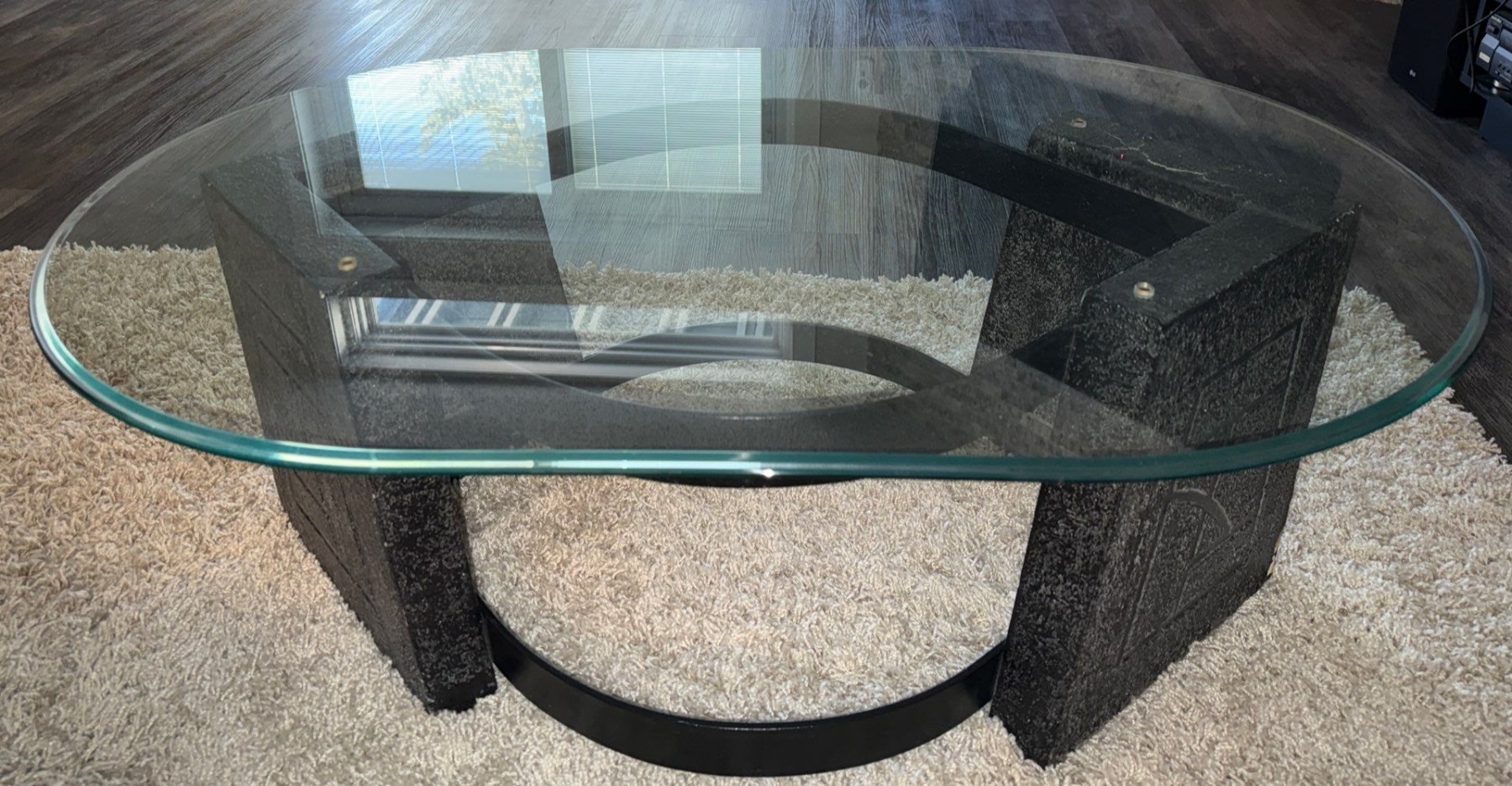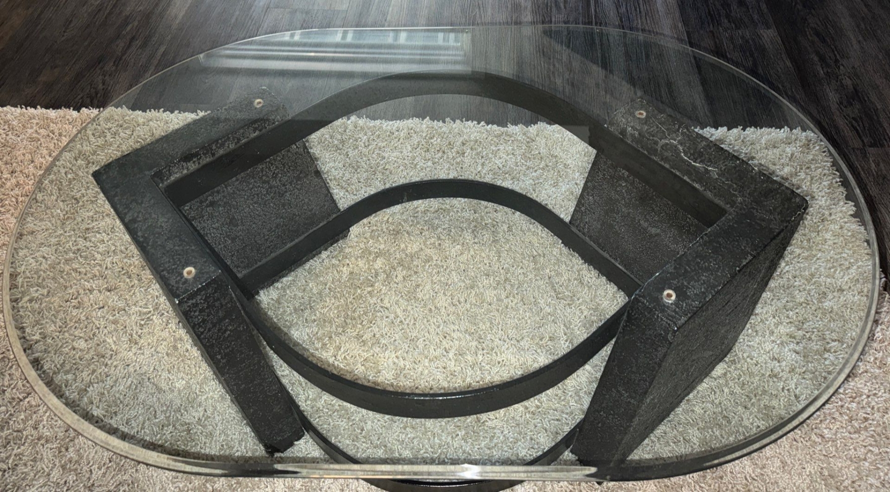 Modern Coffee Table w/ Glass Top & Dark Colored Base