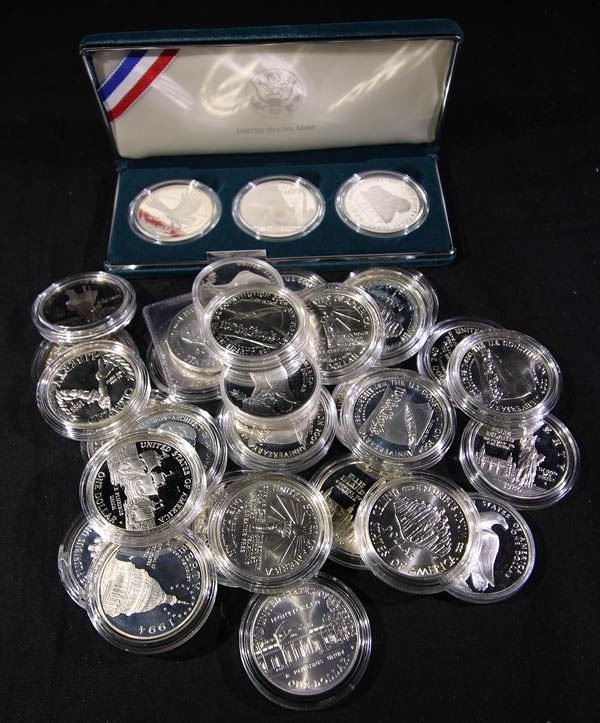 Modern Commemorative Dollars. Uncirculated and proof. 32 silver. Available for viewing at Danbury Office only.