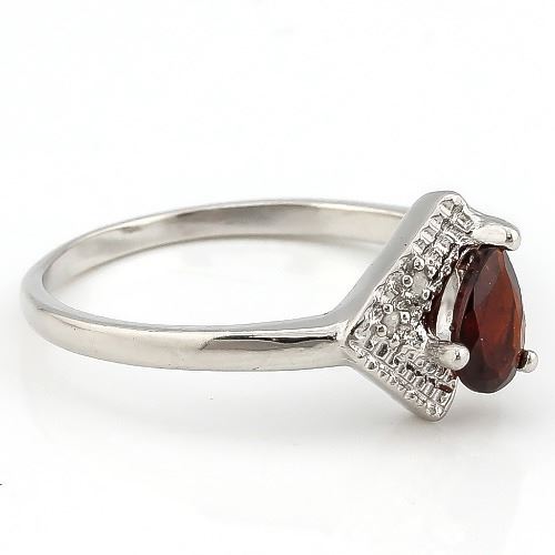 Pear cut, genuine 6x4mm,  0.45CT Garnet gemstone ring with 0.01ctw genuine Diamond accent set in Platinum over Sterling Silver.  Size 8.  1.7g