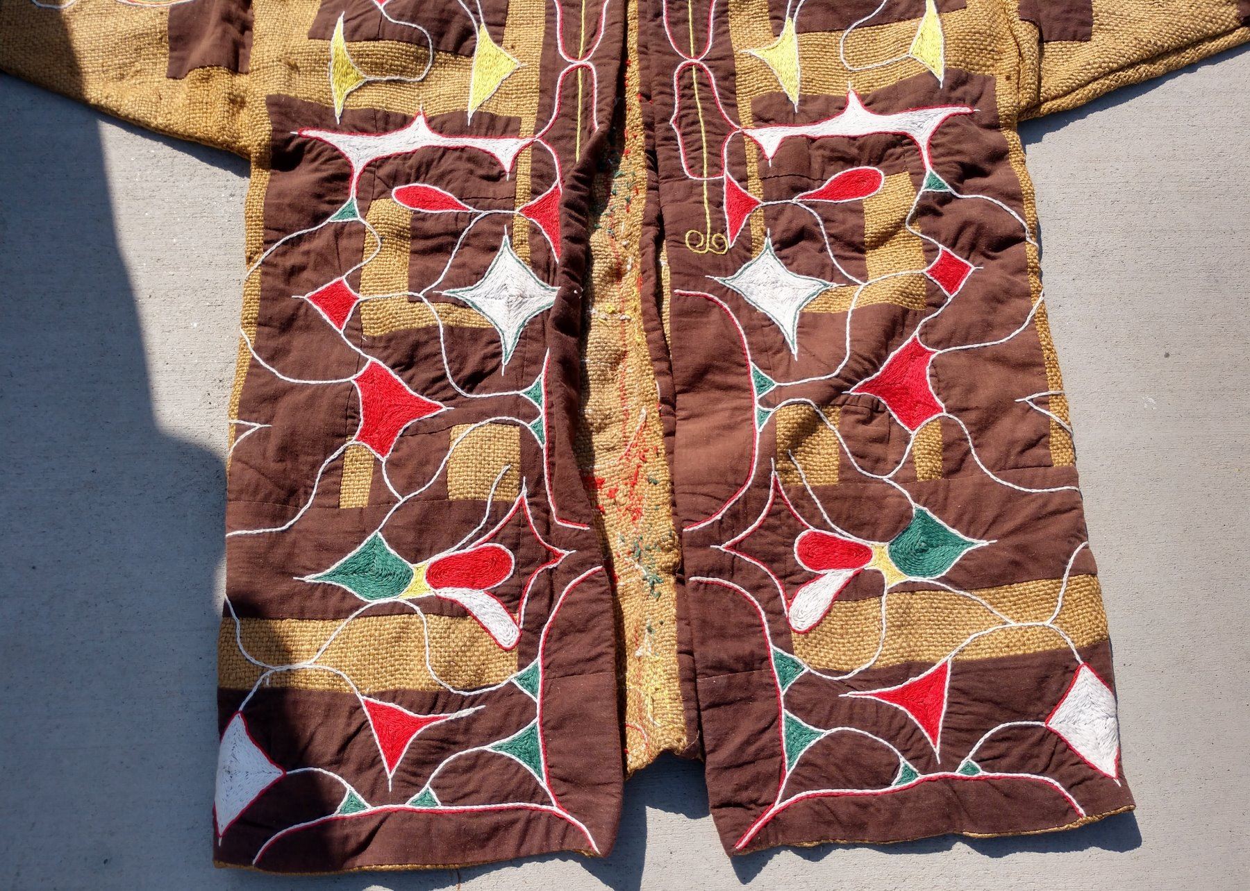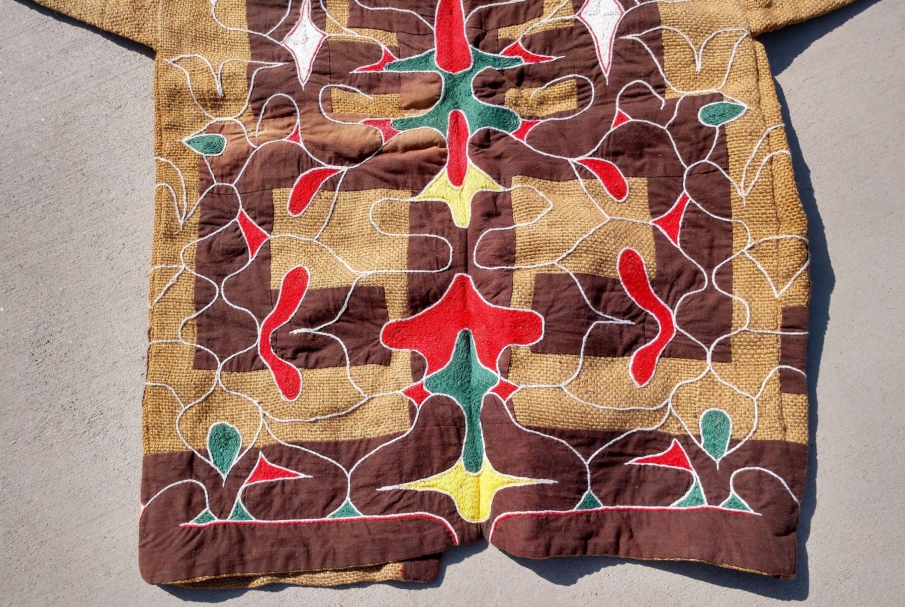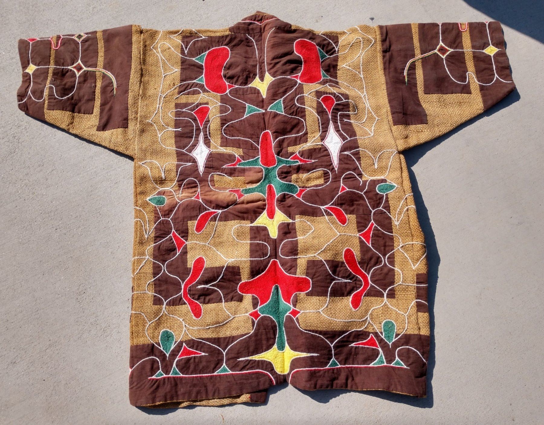 Modern Japanese Kimono, 20th century item. Made of fiber, cloth and thread, the item measures 25" at the shoulders and 36" long. Japan. Condition: As found, slight wear, see images. Shipping: $22.50 w/insurance and signature.