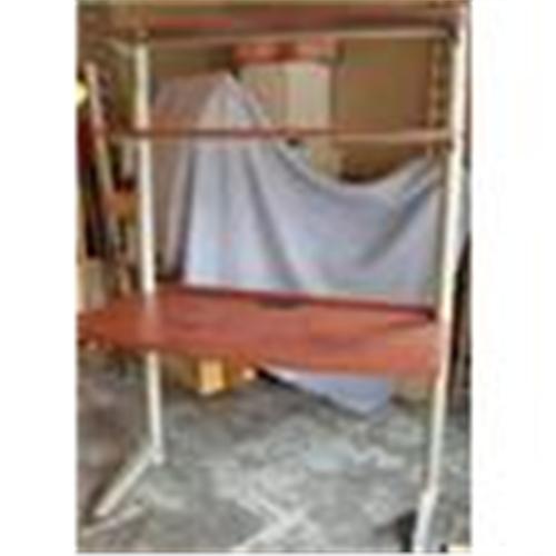 Up For Auction is a Contemporary Laminate Cherry Wood & Metal Computer Desk with Shelves!</em></td>