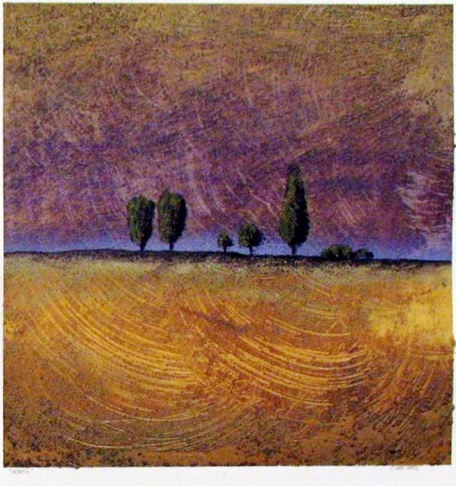 Chris Hill | Title of Art: Violet Sky II | Medium: Hand Signed by the Artist Original Painting on Paper | Edition Size: Original | Unframed Size: 15 x 15 inches | Offered Unframed