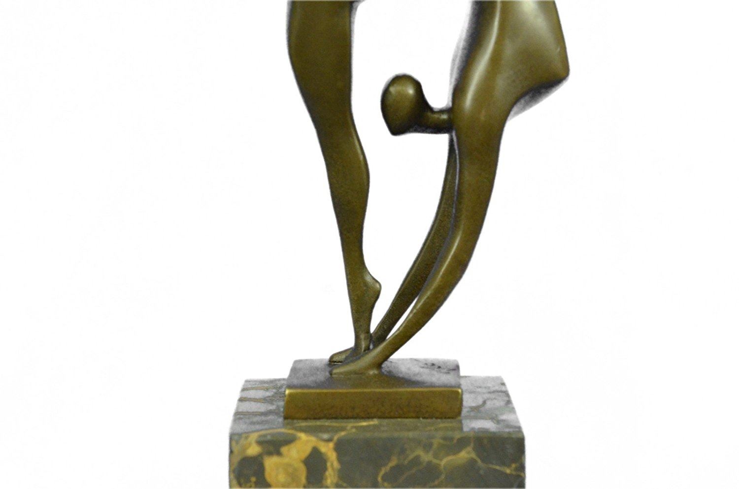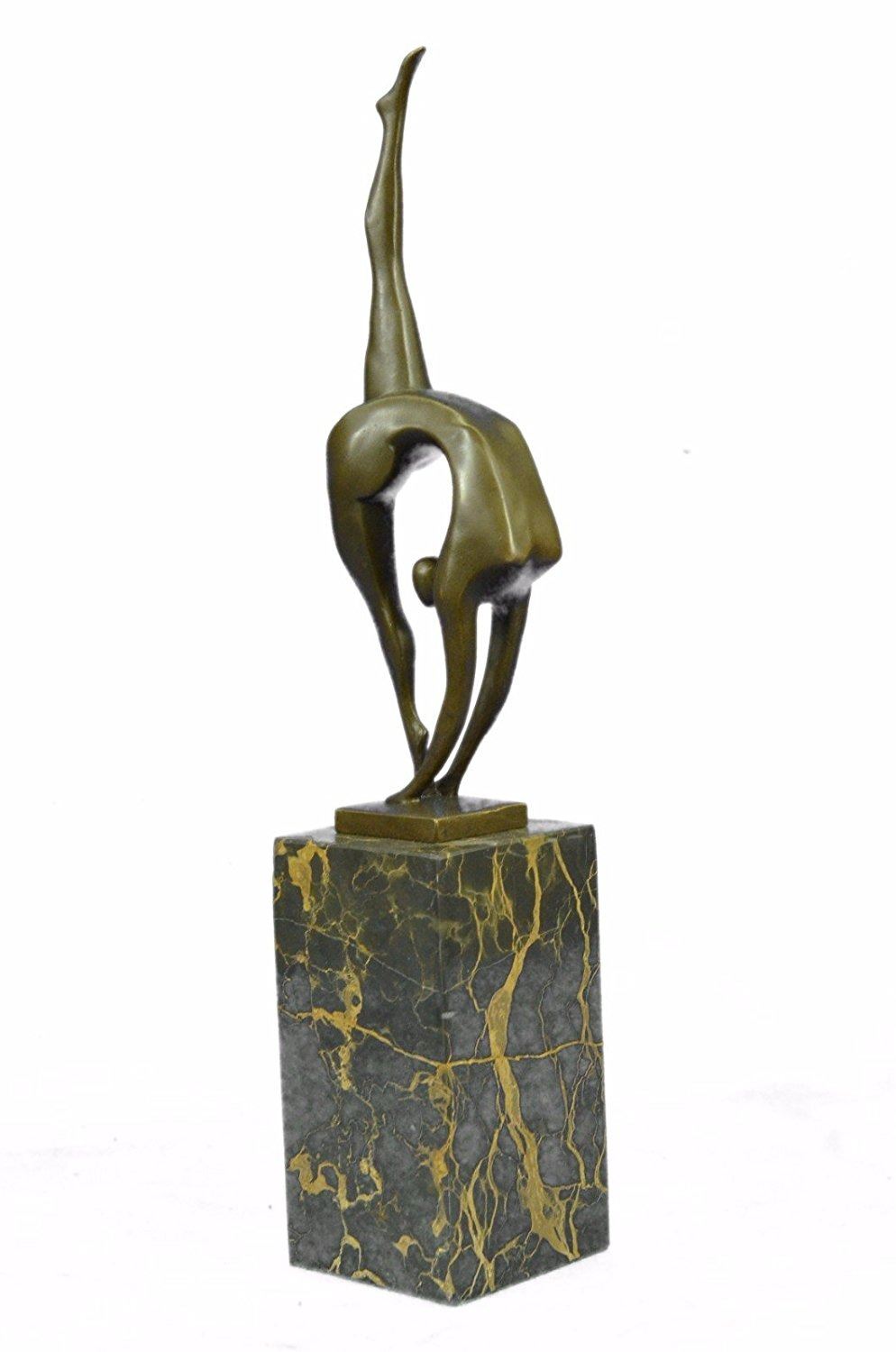 With grace, agility and flexibility,this abstract gymnast competes for gold. Her body moves fluidly as she curves backwards and touches the mat. Though her body is slender, she packs a lot of energy and strength. She balances on one leg, while extending the other long lean leg to the sky. 100% bronze and handmade, this brown patina sculpture was cast using the Lost Wax Method and mounted on a marble base. Bronze Dimensions with Marble Base: Height 14 X Width 6 inches. Weight: 6 LBS. Inventory: 63B7132036