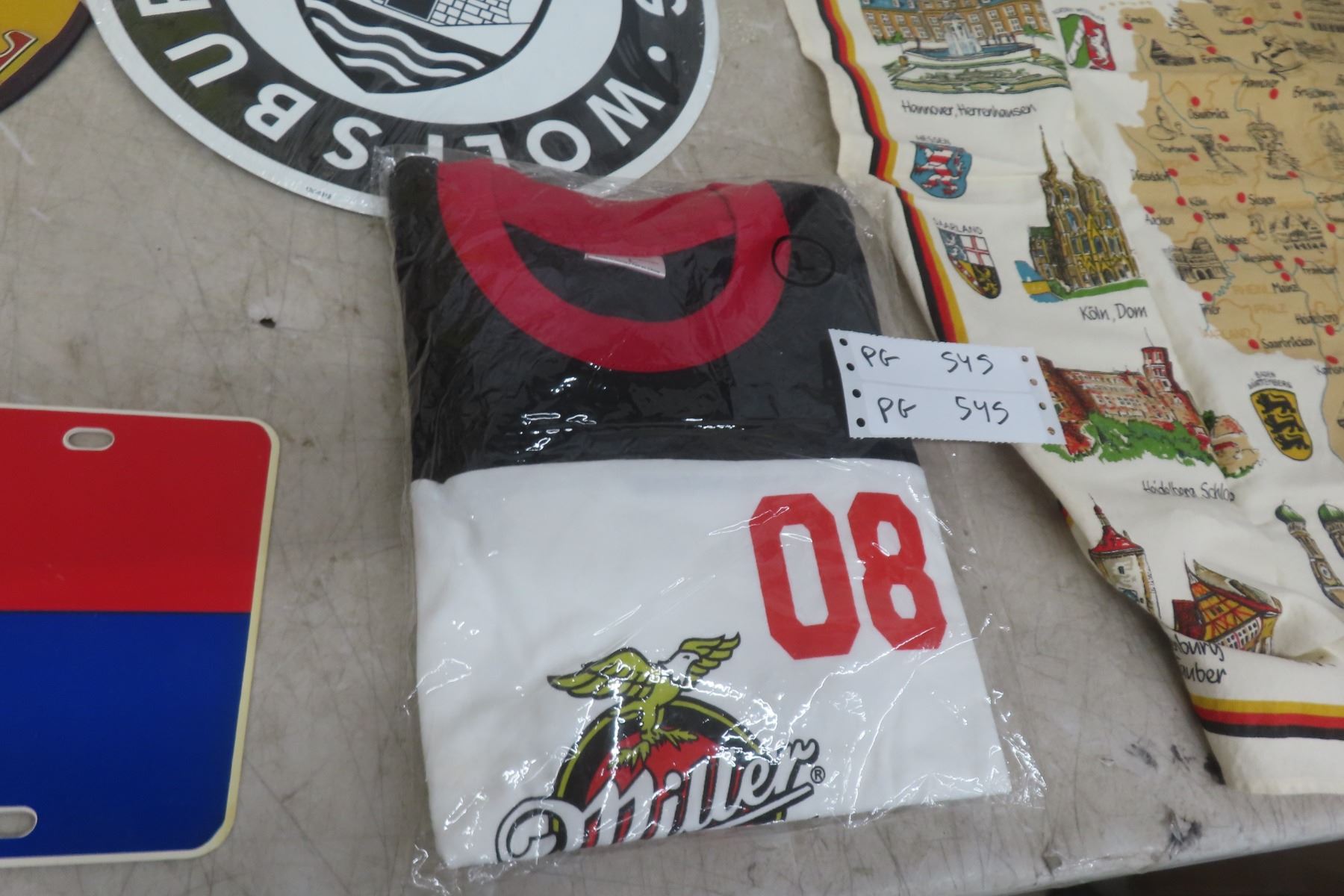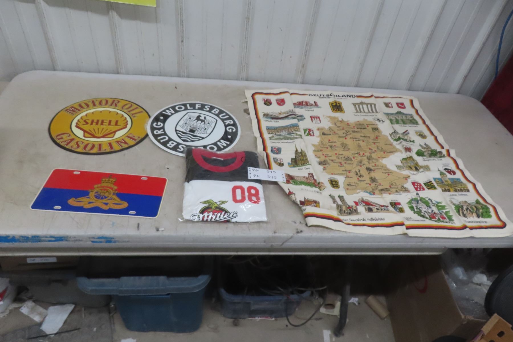 Modern Mixer Shell Sign, Miller Large Shirts, German Tapestry Display and More