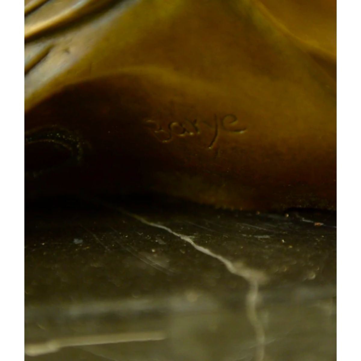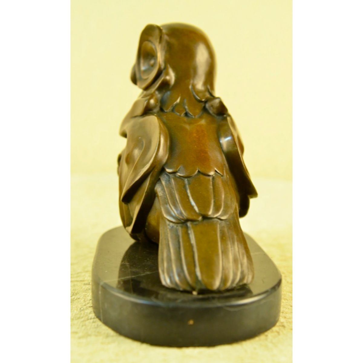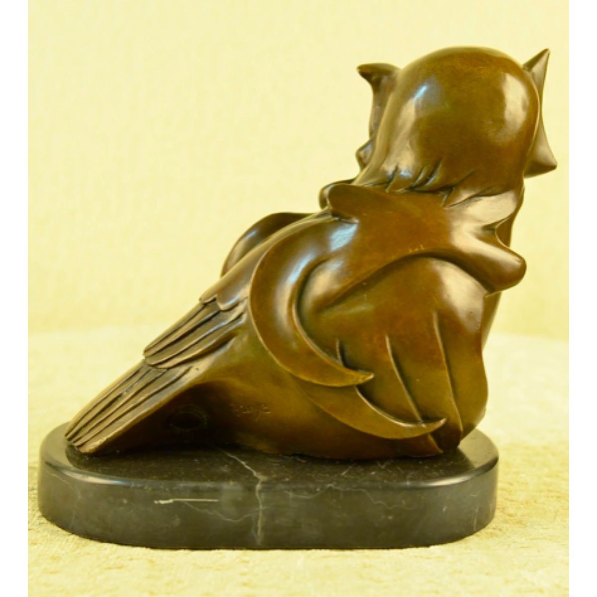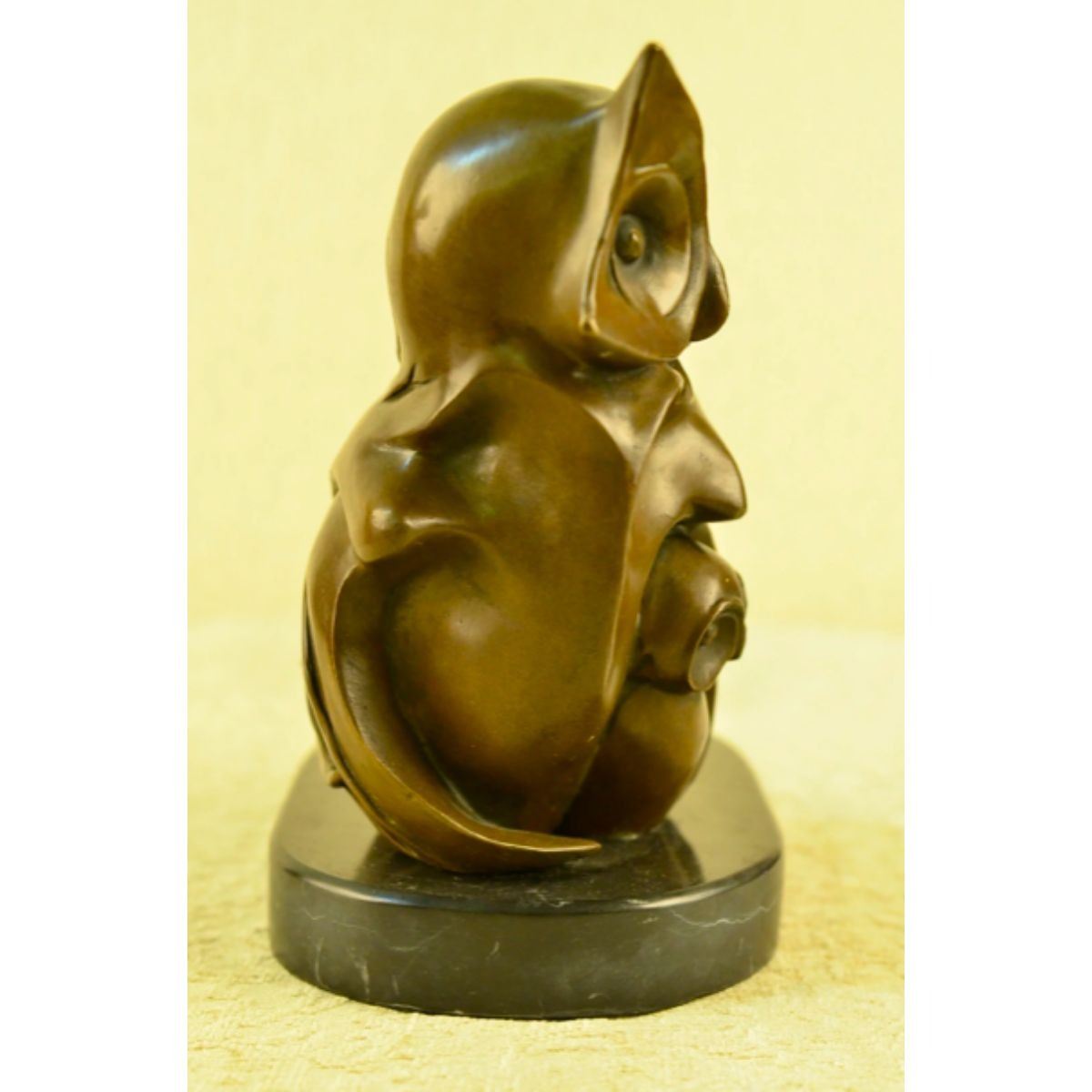 Modern Owls sculpture. Lost wax casting method bronze, with brown patina, mounted on a marble base. 9" H X 12" W. 10lbs. Signed Barye at bottom.Â