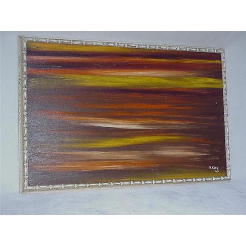 Framed oil painting, 21'' X 32'', on artist board. Modern interpretation in oil, in shade of orange, brown yellow. Oak frame. Signed A Katz 63
