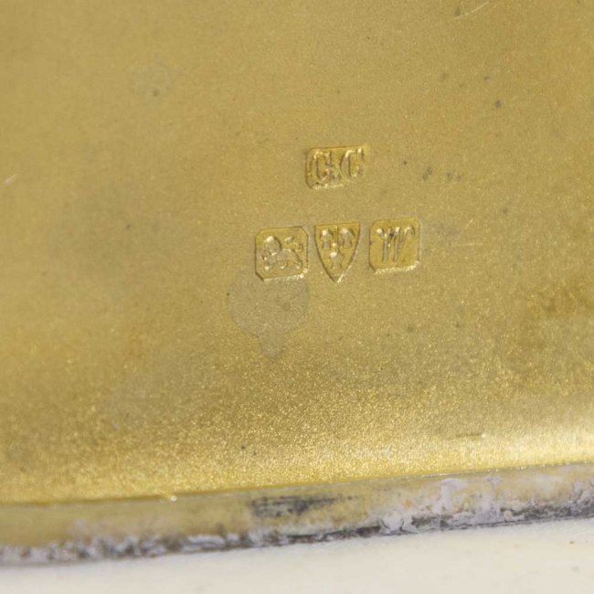 With enamel nude. With English hallmarks. Approx. 3" H x 3 1/2" W.
