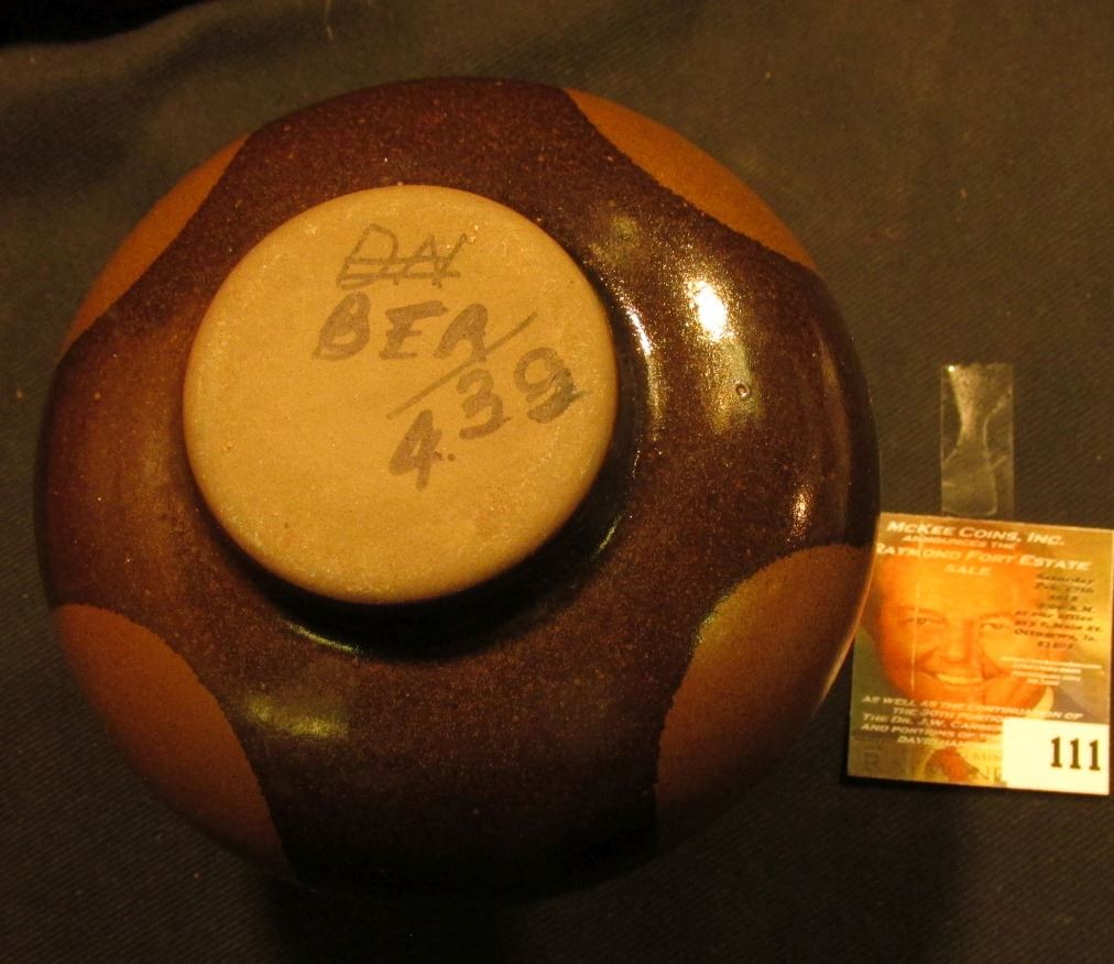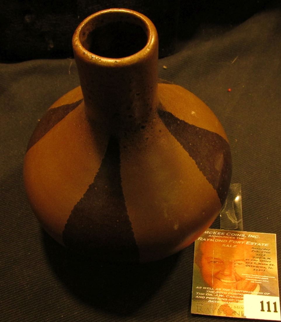 Modern Stoneware vase. Indian motif. 4 1/2".