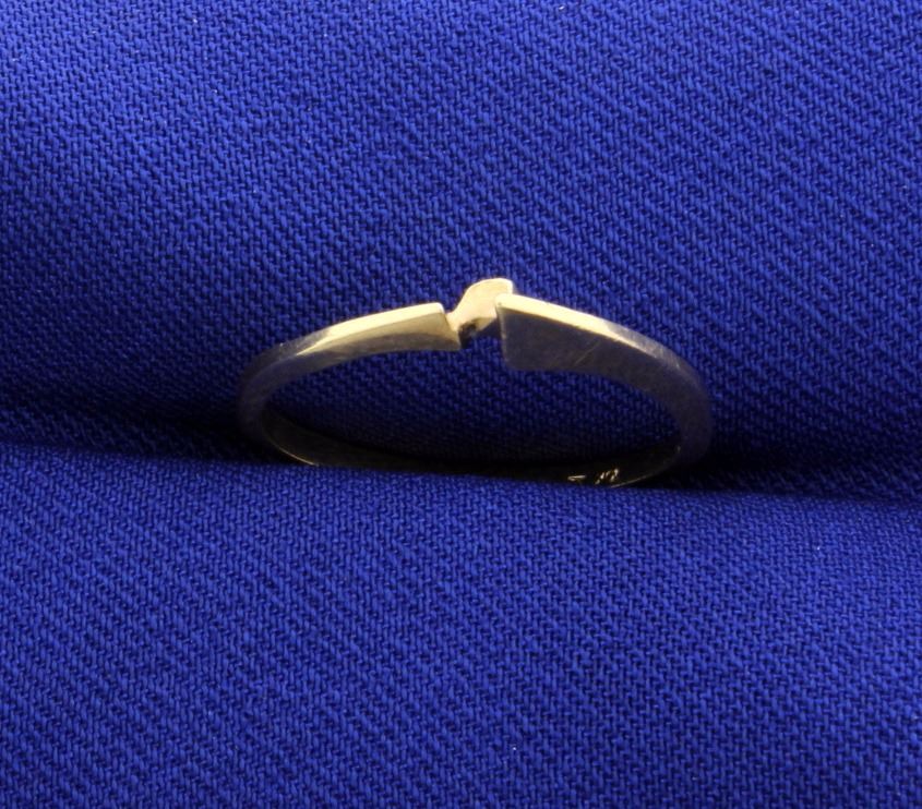 In 10k yellow gold. Very unique design on this ring, it is a size 7 1/4. 1.2g
