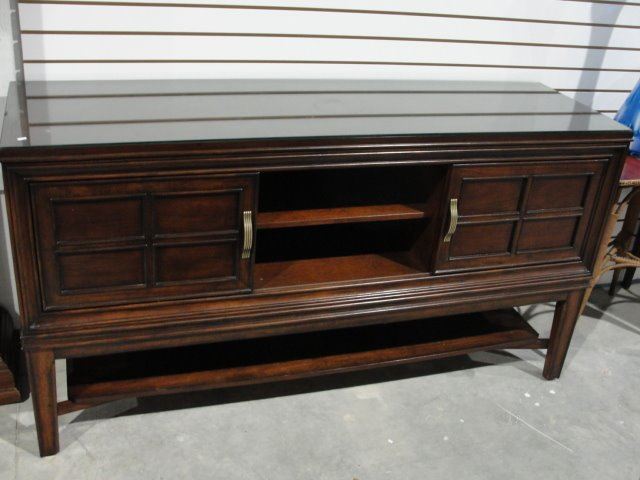 Modern Walnut Sideboard w/Custom Glass Top by LazyBoy