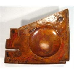Modern abstract copper dish inset with semi precious stone, impressed 'SF' to base, 39cm in length
