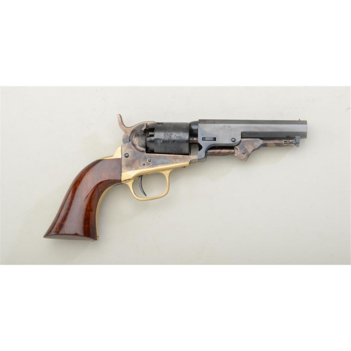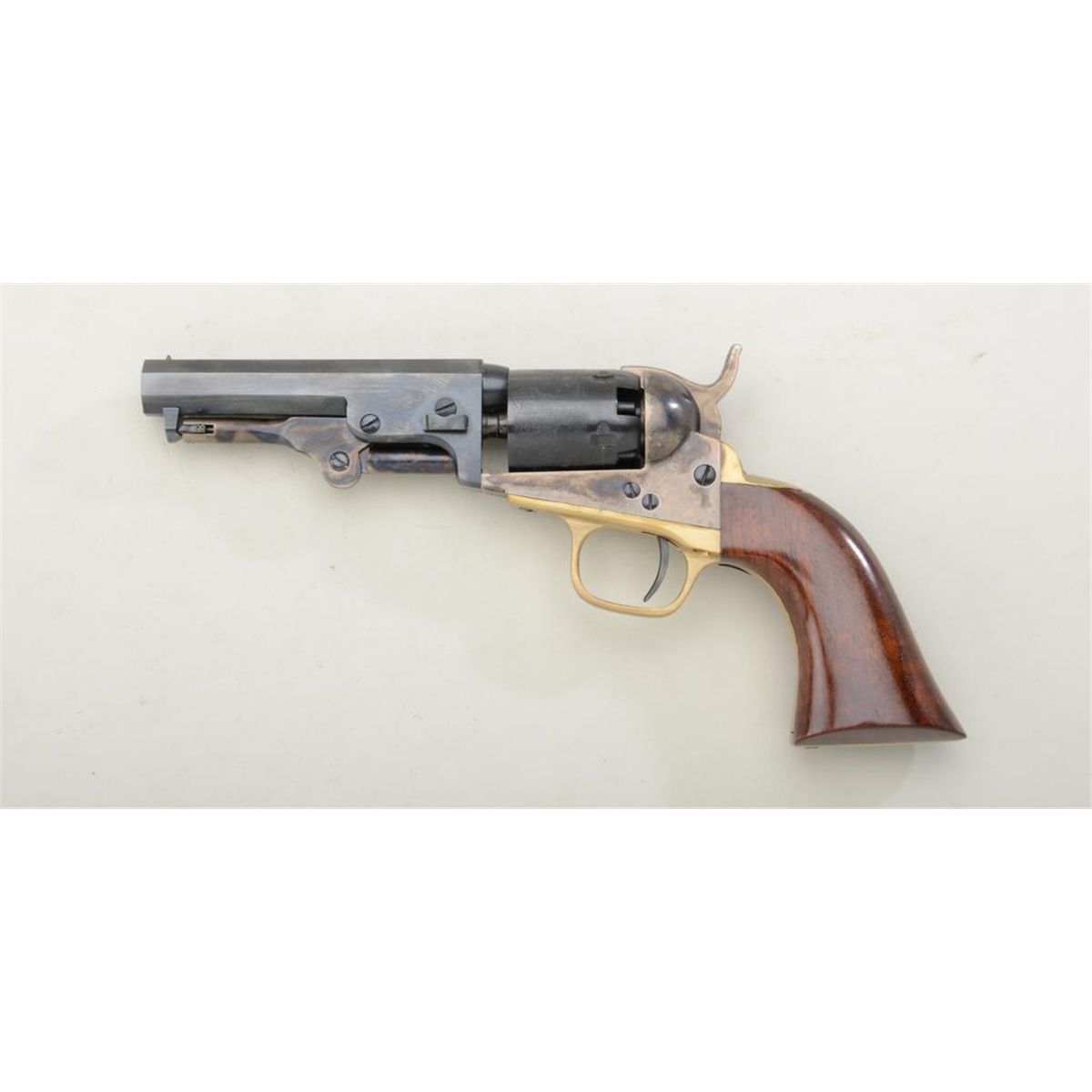 Modern copy of a Colt Model 1849 percussion revolver, .31 cal., 4” barrel, blue and case hardened finish, wood grips, #A22541. This gun is in like new condition showing approx. 99%+ original finish, fine bore, action andgrips; brass trigger guard and back strap. Est.: $100-$200.