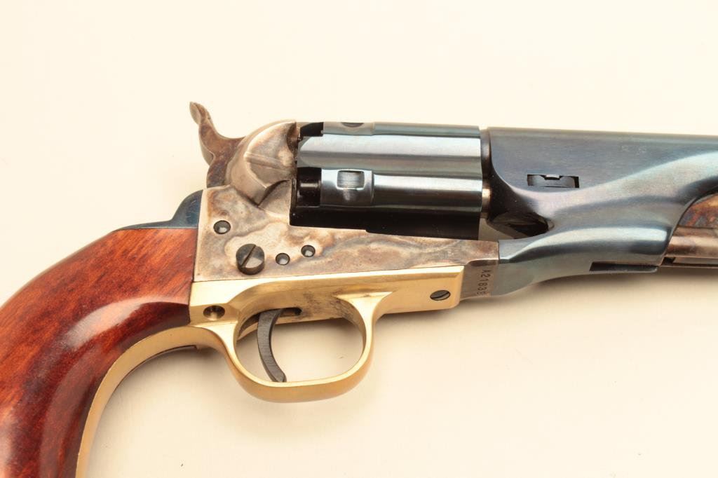 revolver, 8” barrel, blued and case hardened finish, wood grips, S/N A21639, in excellent condition showing minimal handling. (Percussion). Est.: $150-$300.