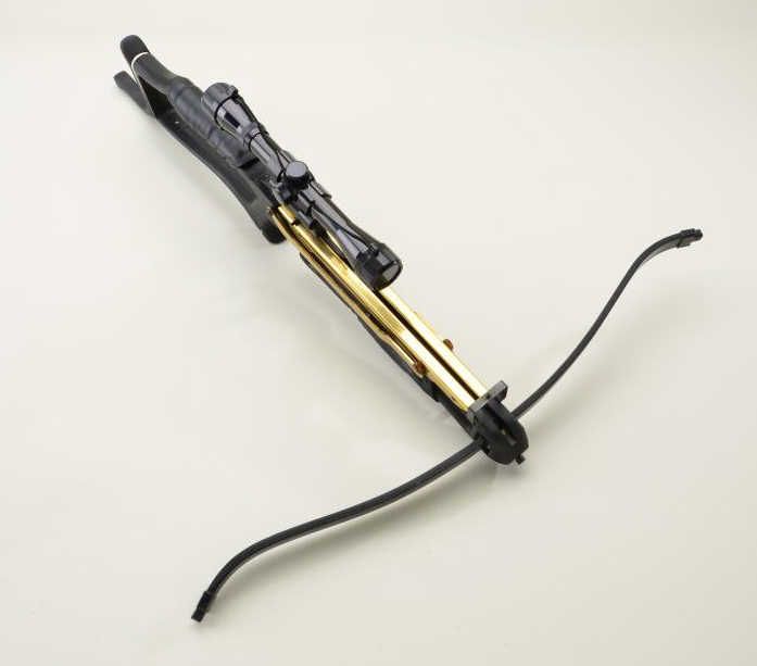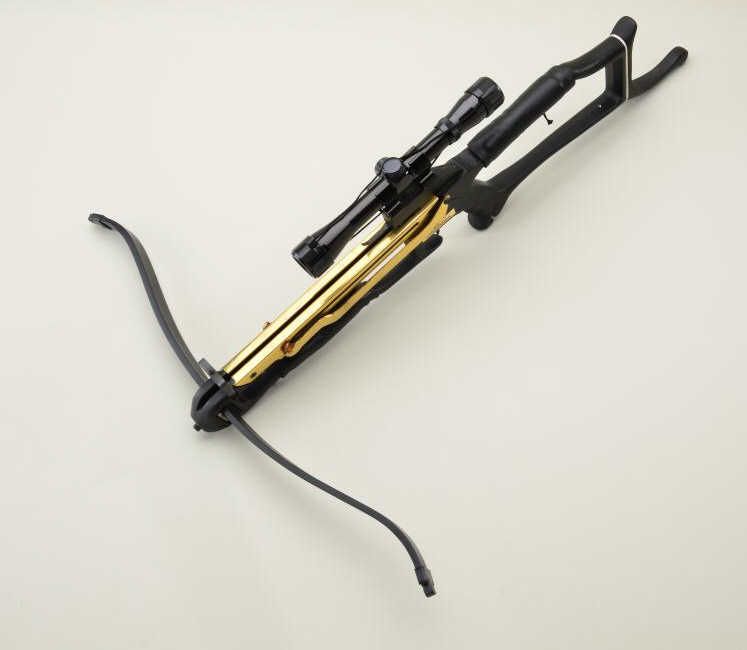 Modern crossbow by Barnett (Commando Model) in hardcase and mounted with a Tasco 4x32 scope with good optics; appears to be complete and in overall good condition but sold “as is”. Est.: $150-$300.