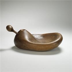 Modern nut bowl and hammer USA, 1950s hand carved walnut 12"w x 14.25"d x 5.25"h