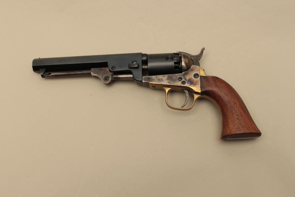 caliber, 5.5” octagon barrel, blued and case hardened finish, wood grips, S/N 041566, in overall fine condition with majority of original finish, crisp action, sharp markings, fine grips; shows little handling. (Percussion). Est.: $100-$200.