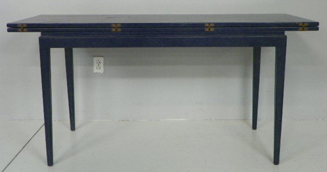Live-dine table. Approx. 60" L x 29" H, open 42", closed 21". Top needs refinishing. Please read our terms of sale.