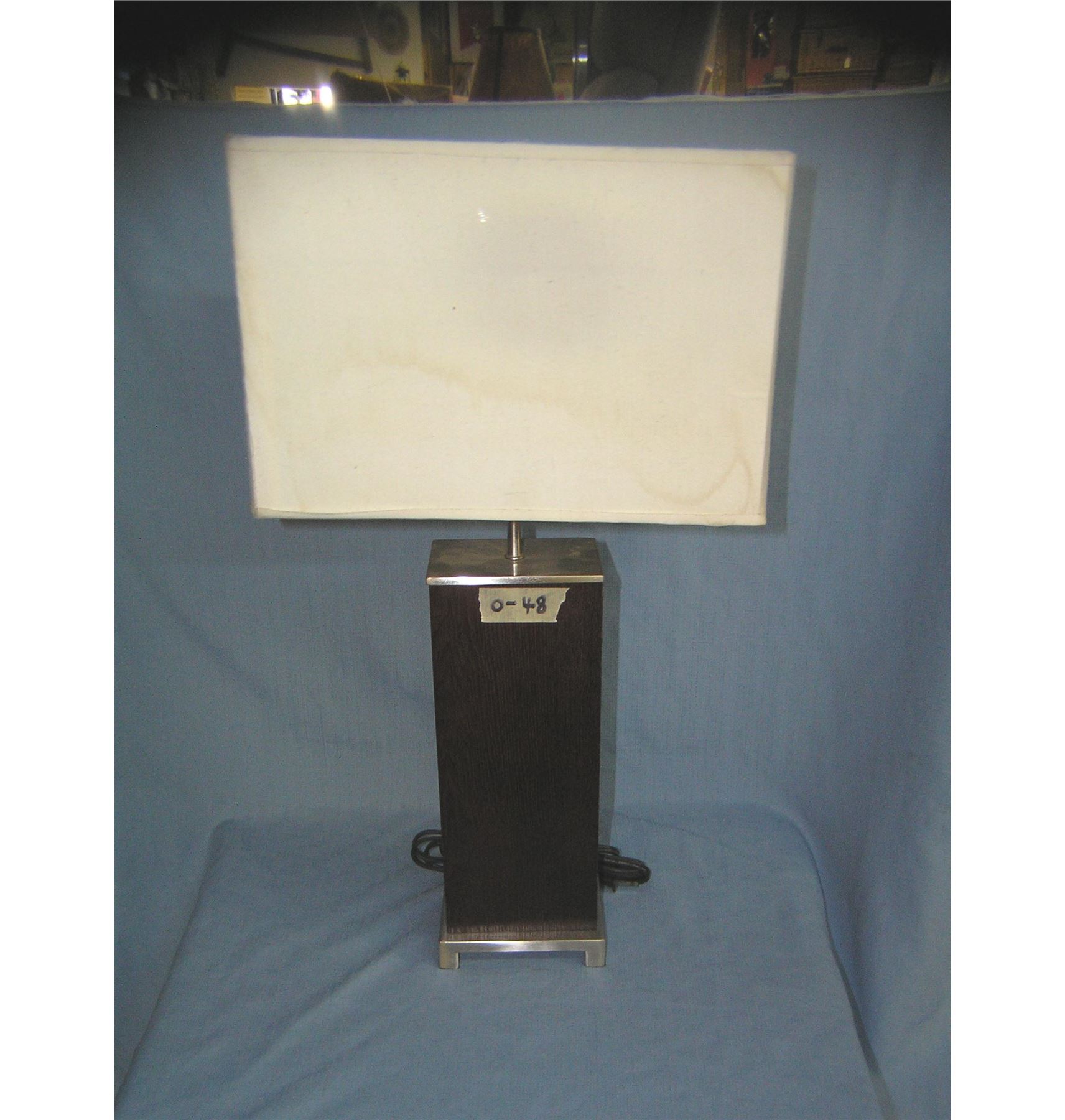 Modern walnut and chrome table lamp with shade est. value $40.00-$50.00