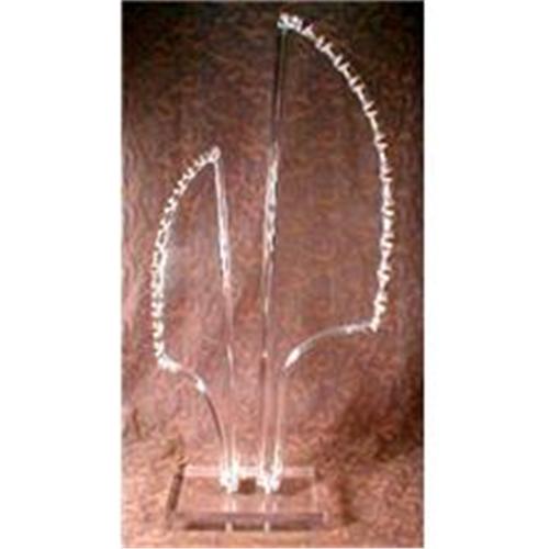 Moderne Lucite sculpture of two complementary forms on a rectangular base. They could be called feathers, sails or tropical leaves. The forms can be turned to form the juxtaposition that is most pleasing to you.