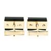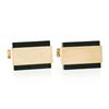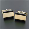 A pair of modernist solid 14k yellow gold brushed cufflinks with 2 rectangular cut natural black onyx (19.1x13.8mm). These cuff links have a swivel back design with a clearance of 13.5mm, weigh a total of 16.86 grams, and the front panels measure 20.6x13.8mm.