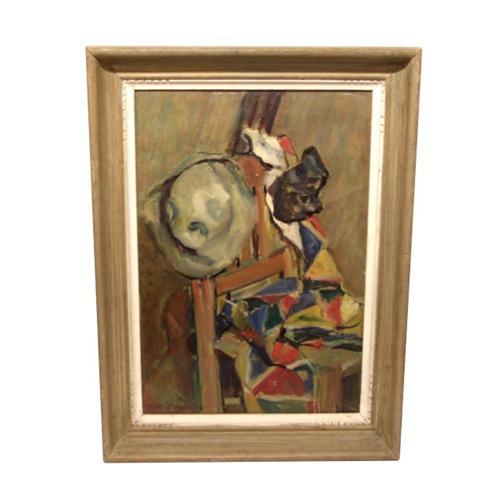 Modernist Painting "Hat and Mask on Chair" by Max Gordon. Signed.